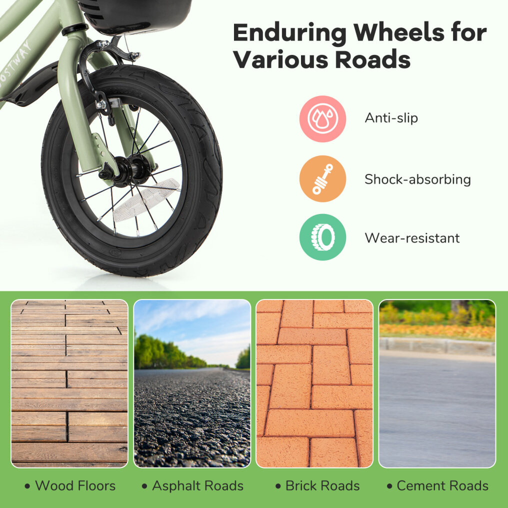 ● Dual Brake System & Training Wheels: The training bicycle is equipped with dual brake system: hand brake for kids to easily brake with shorter grip distance and coaster brake to pedal backward to stop the bike. Fully enclosed chain guard prevents accidental clamping to ensure riding security. Plus, it also comes with 2 detachable training wheels for beginners to better keep balance.