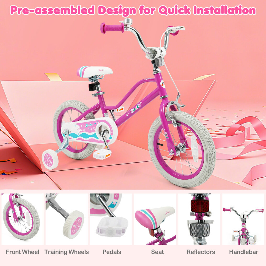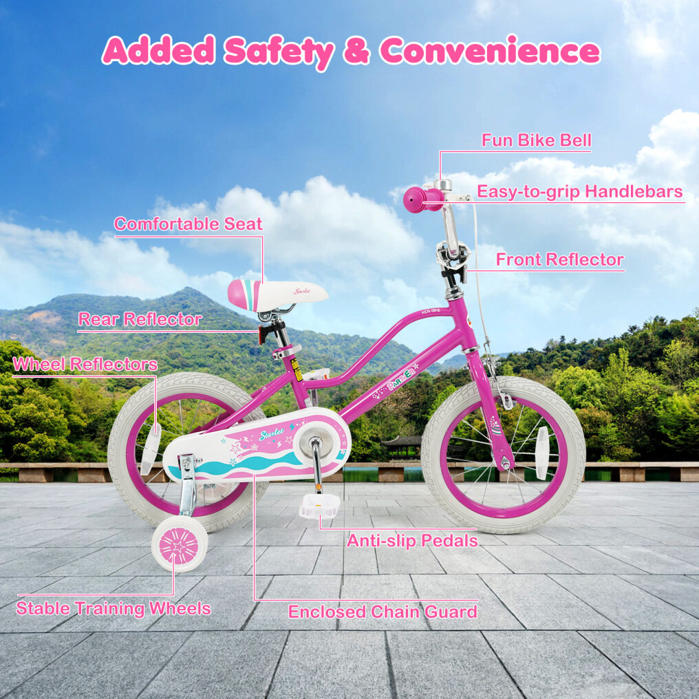 ● Added Safety Protection: The removable training wheels ensure extra balance for beginners, allowing your little one learn to pedal independently. The enclosed chain guard prevents accidental pinching. The kids bike also comes with front reflector, rear reflector, and wheel reflectors to keep your child visible to add more safety. Kickstand allows your kids to stop the bike (Only available for 18-inch bikes).