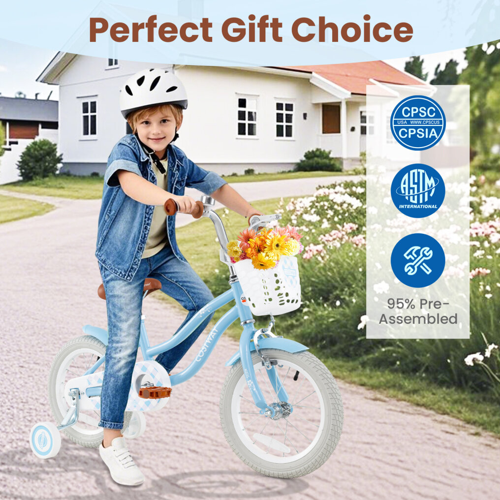 ● Specially Designed for Young Riders: The wear-resistant pneumatic tires are made of multi-layer materials: rubber outer, buffer layer, cord ply, inner tube and protective layer, offering a safe and steady riding experience. The sturdy carbon steel frame and stable training wheels make it easy to ride. What's more, the PP-covered seat improves overall comfort.