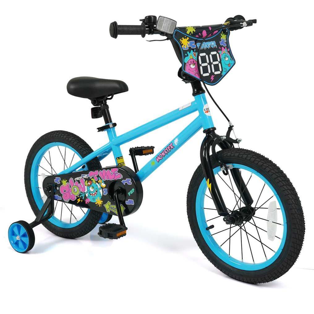 16 Inch Kids Bike with Training Wheels for Ages 4-7 Years Old Blue- Street Art Time