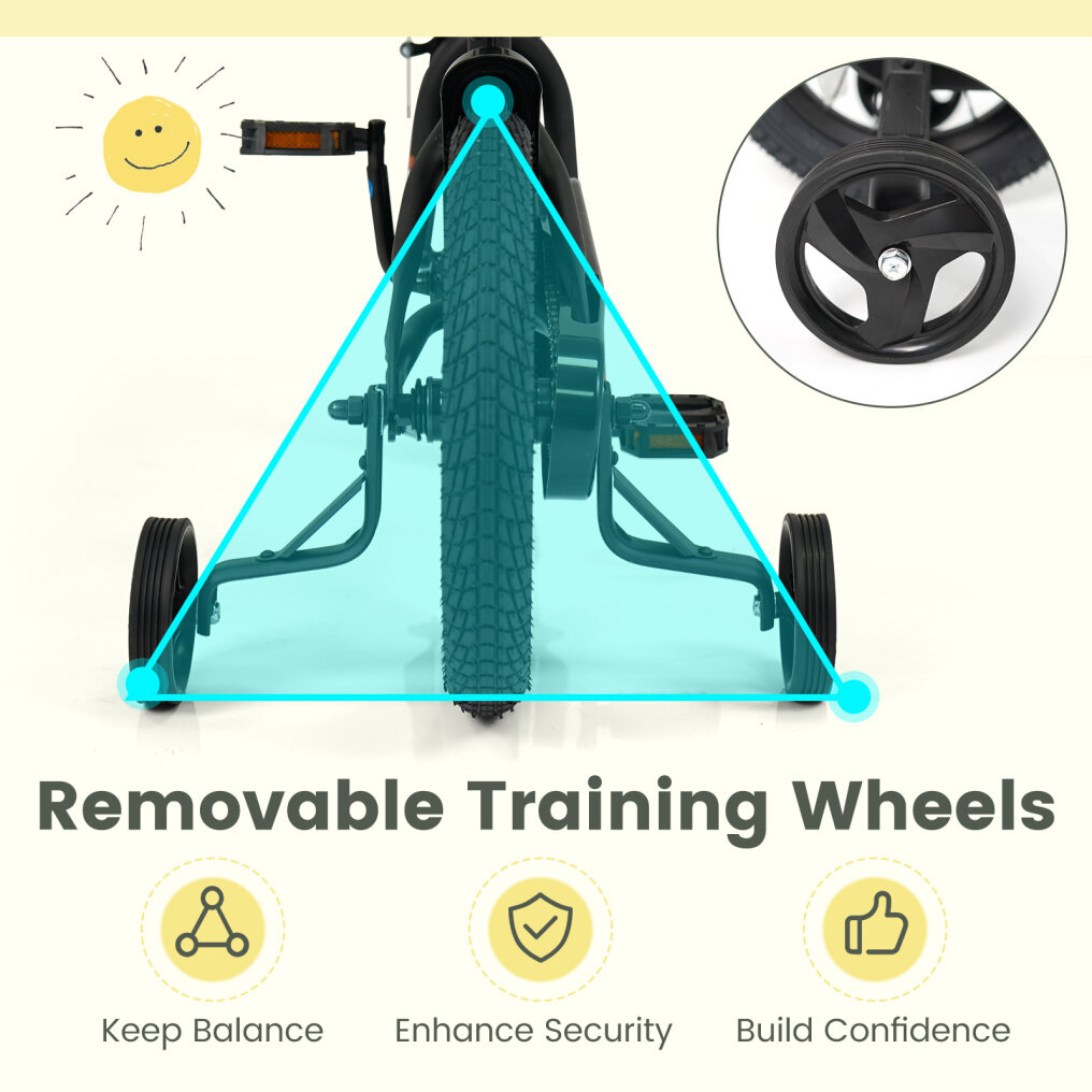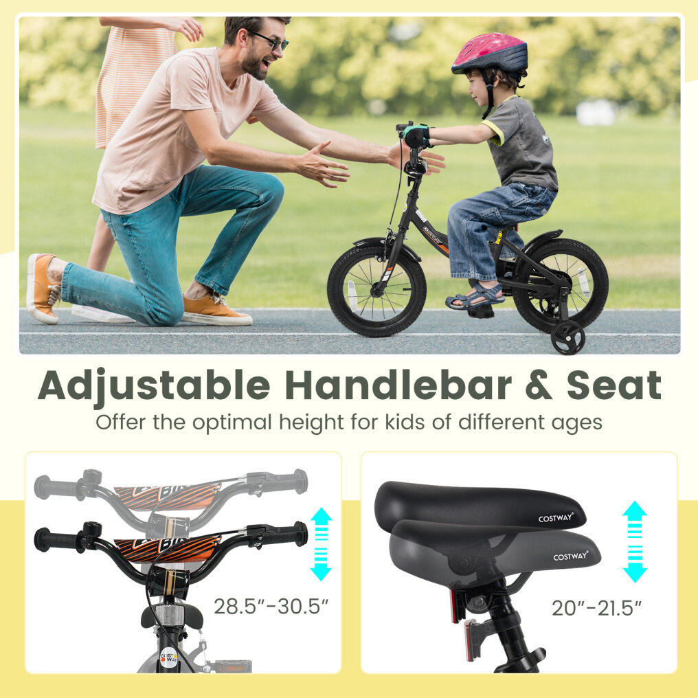 12/14/16/18 Inches Kids Bike with Removable Training Wheels and Adjustable Seatfor 3-8 Years Old Black-14 inches
