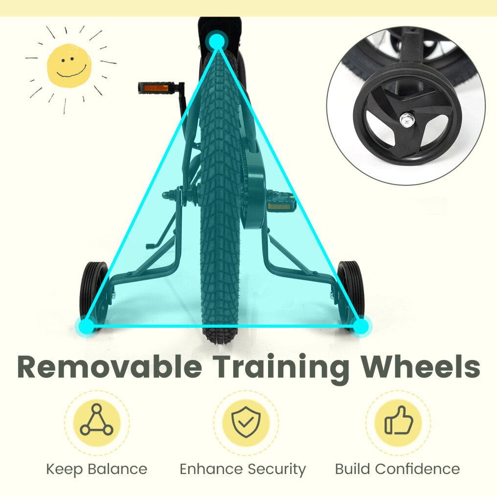 12/14/16/18 Inches Kids Bike with Removable Training Wheels and Adjustable Seatfor 3-8 Years Old Black-18 inches