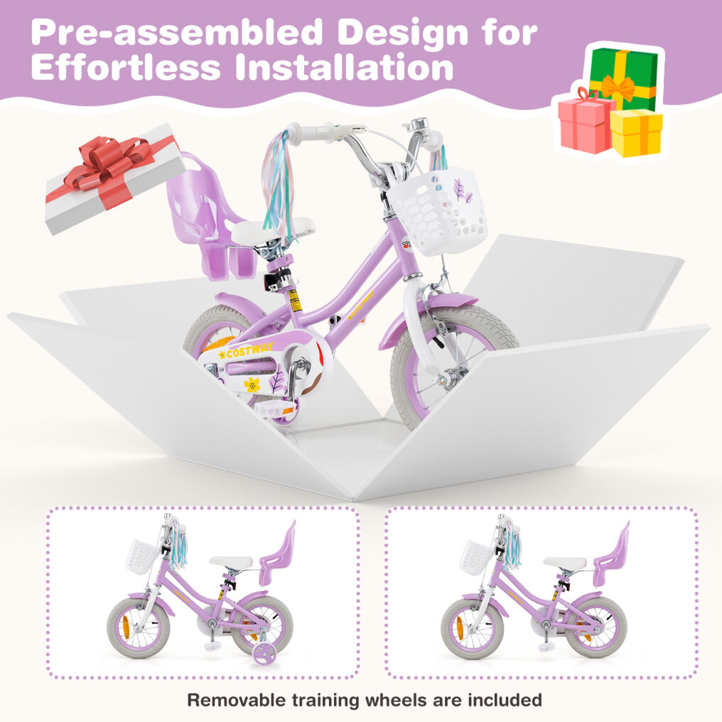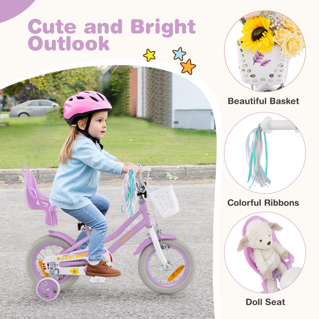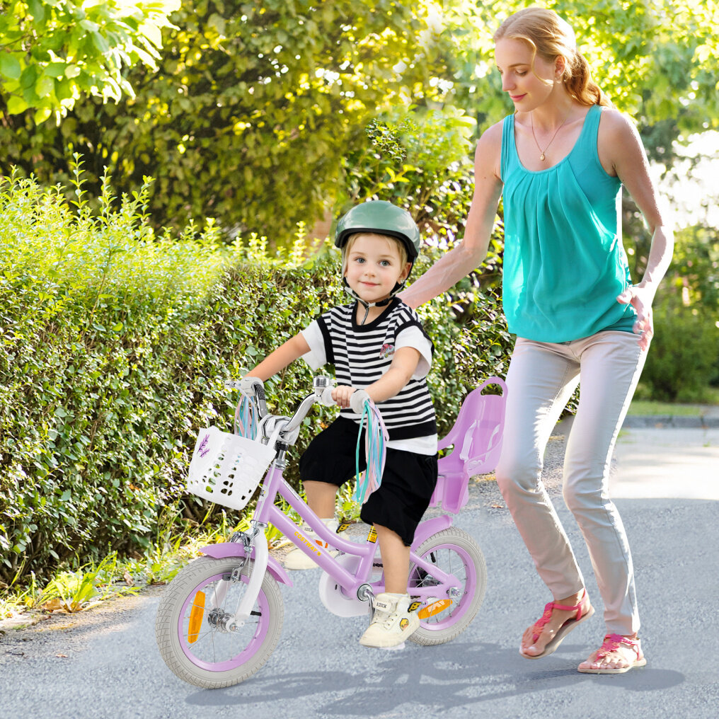The handlebar and seat can be adjusted according to your child's growing height, which will be perfect for kids aged 3-4/3-5 years old. Thanks to a doll seat and front basket, your child can store their toys and snacks while enjoying the ride. The detachable training wheels allow little girl to safely learn how to ride. With handbrakes and a rear coaster, kids can conveniently stop the bike. The anti-slip and wear-resistant tires offer a smooth and stable ride for children. More importantly, it has AS/NZS 1927 and CPN No.6 of 2004 certification, providing you with peace of mind. Give your child the joy of riding with our charming bicycle!