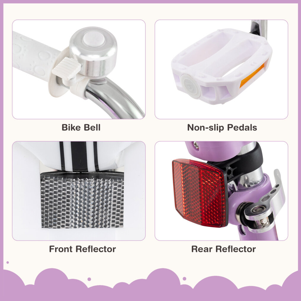 High Quality Tires and Training Wheels: 2 wear-resistant tires allow for smooth rides on various flat roads, including brick roads, wood floors, and asphalt roads. Moreover, the 2 removable training wheels will help your little princess learn to pedal independently and keep balance.
