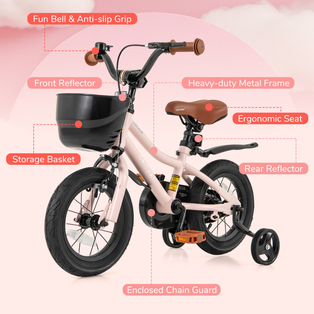● Dual Brake System & Training Wheels: The training bicycle is equipped with dual brake system: hand brake for kids to easily brake with shorter grip distance and coaster brake to pedal backward to stop the bike. Fully enclosed chain guard prevents accidental clamping to ensure riding security. Plus, it also comes with 2 detachable training wheels for beginners to better keep balance.