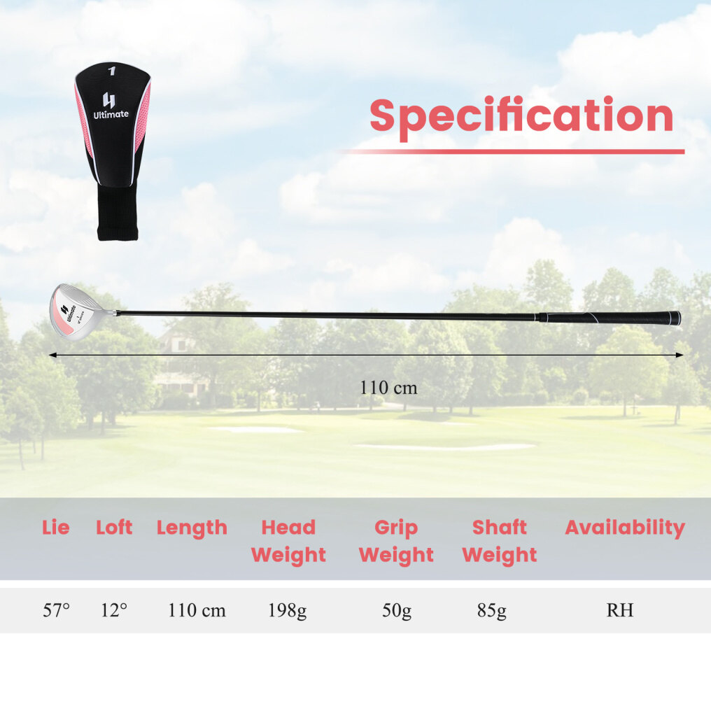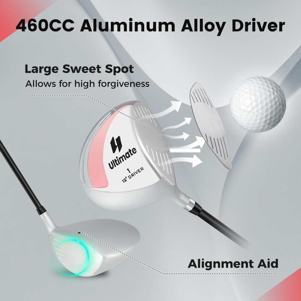 ● 460CC Aluminum Alloy Driver: This women's golf driver is designed with a maximum legal size 460CC aluminum alloy club head. The generous head size provides an extensive surface area, greatly reducing the chance of miss-hits.