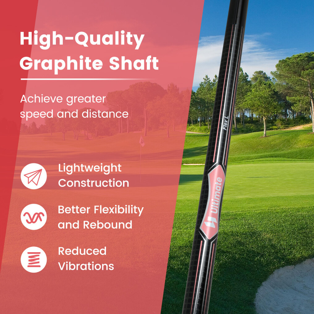 ● Premium Graphite Shaft: Lighter than traditional steel shafts, the graphite shaft offers increased swing speed and distance while providing reduced vibrations for improved feel and feedback on impact.