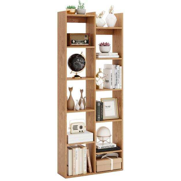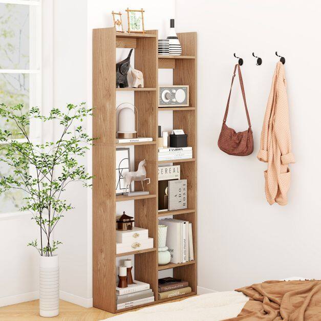Expansive 12-Tier Storage: The bookshelf features 10 open cubes and 2 top shelves, offering optimal storage solutions. Ideal for organizing books, photos, potted plants, and souvenirs, its tiered design maximizes your space with a space-efficient layout.