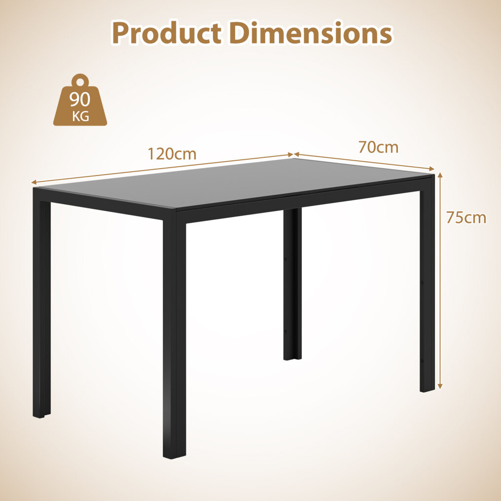 Looking for a stylish dining table that can comfortably seat 4 people? This modern table features a classic black finish and clean lines, exuding modern elegance and visual appeal. Its wide glass top provides ample space for meals and everyday items, and the quality glass is wear-resistant, ensuring it remains pristine despite daily use. In addition, the table is supported by a powder-coated metal frame offering excellent stability, with thickened metal tubes and a reinforced structure for sturdy support. Whether for your dining room, restaurant, or kitchen, this modern table is a stylish focal point. Its smooth surface also makes cleaning easy, saving you time and effort.