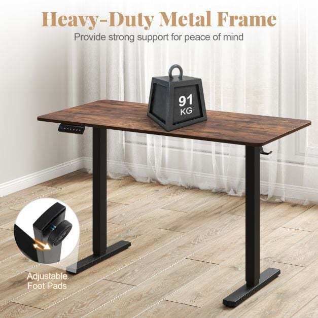 Sturdy Construction: Built with a heavy-duty metal frame, the electric stand up desk ensures stability and durability to support up to 91 kg. Smoothly adjust heights without wobble, while adjustable foot pads provide extra balance on uneven floors ensuring your setup is always sturdy.