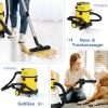 Ready to revolutionize your cleaning routine? Experience unmatched cleaning power with our ultra-powerful wet/dry vacuum with 1200W motor and invent a new way to clean messes. From huge spills to stubborn dirt, up to 17kPa of relentless suction will get you through it all. With our versatile attachments, no stain is safe - floors, carpets, even sofas are spared with ease. And say goodbye to the hassle of cleaning by hand thanks to our unique attachments that spray, scrub and vacuum right before your eyes! Craving control? Our easy-to-use remote hose and extension tubes ensure no corner is too far or difficult to reach. The huge 20L capacity tackles larger messes with ease and without breaks. Move freely with the smooth-rolling castors and keep your space tidy with the integrated storage space. And that's not all - our HEPA filter system captures dust particles and ensures the air you breathe is refreshingly clean. This isn't just a vacuum cleaner; it's your new best friend!