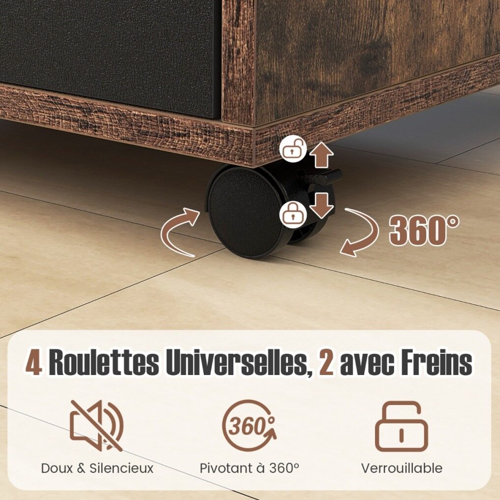 ● 4 Convenient Casters: This cabinet is equipped with 4 casters to ensure flexible movement in all directions. Two lockable front casters provide extra stability for items placed on top, like your printer, mirror, or coffee. It is worth mentioning that the casters can also be removed as needed for stationary placement.