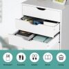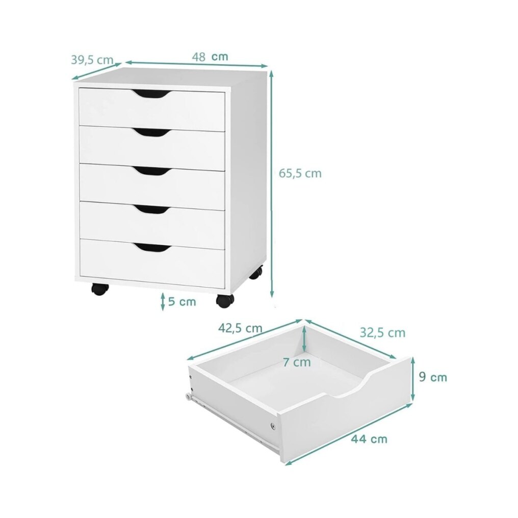 ● Large Storage Space: This cabinet is equipped with 5 large drawers with internal dimensions of 15.5”(W) x 13”(D) x 3”(H), which provides ample storage space for snacks, cosmetics, office supplies, etc. The smooth metal slide rails enable you to access items easily. In addition, the spacious top can accommodate your printer, scanner or decorations.
