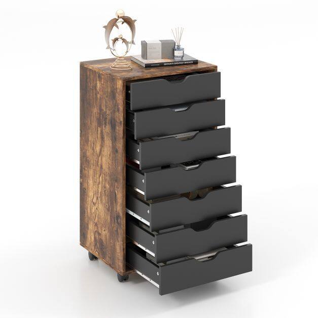 Mobile File Cabinet on Wheels with 7 Drawers-Brown