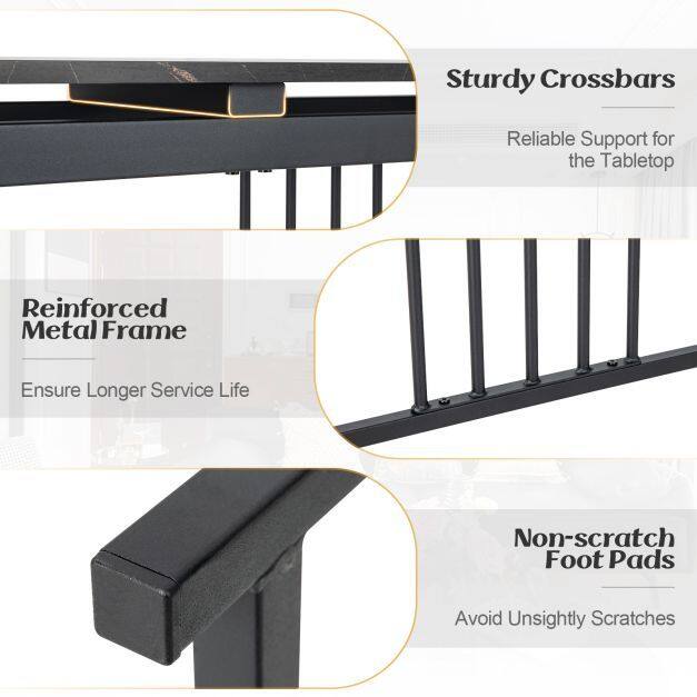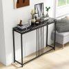 Modern Flair: Level up your home with this stunning black console table. Its sleek tabletop mimics the allure of real marble, while the elevated tabletop panel creates a unique look. The faux marble console table will add a touch of luxury to any room!