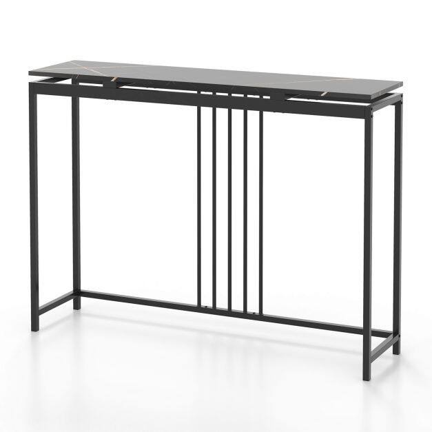 Transform your living area with the sophistication of the black faux marble console table - a masterpiece where the grandeur of marble meets the allure of modern design. Envision this stunner as the dramatic backdrop for your cherished trinkets or as the first sight to welcome guests in your foyer. This multifaceted gem doesn’t just dazzle; it’s crafted to endure, boasting a durable MDF frame, reinforced with robust metal, and exquisite craftsmanship. Its slim silhouette whispers elegance into even the coziest corners, infusing them with a touch of class. For peace of mind, it comes equipped with anti-tipping kits, merging fashion with safety. Click now and redefine your space with lasting luxury!