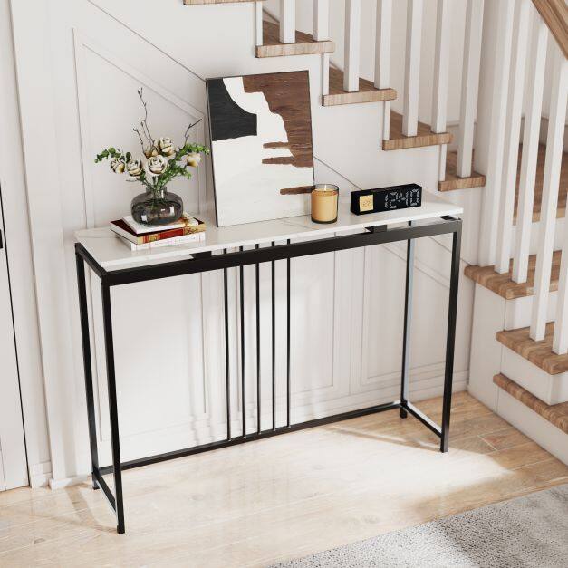 Durable Construction: Enjoy the opulent look with long life span. The hallway table boasts a sturdy build with premium MDF and heavy-duty metal. Its faux marble top is not only aesthetically pleasing but also resistant to scratches and easy to clean.