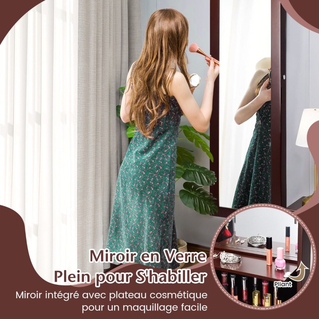 2-IN-1 Jewelry Cabinet with Mirror : The jewelry organizer is a combination of a full-length mirror and a jewelry cabinet and you can enjoy the double benefits of both in one place. The full-length front mirror measures 26.5 x 110 cm (L x H), so you can see yourself from head to toe when doing makeup.