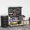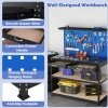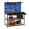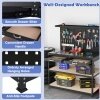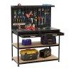 Perfect Tool Organizer: Featuring 1 top shelf, 3 pcs pegboards, a spacious tabletop, 2 large drawers and 2-tier shelf, the workbench will keep your workspace organized and efficient. All your tools, such as electric drill, drill bit and tool box, will be well classified, making every task more manageable and less time-consuming.
