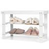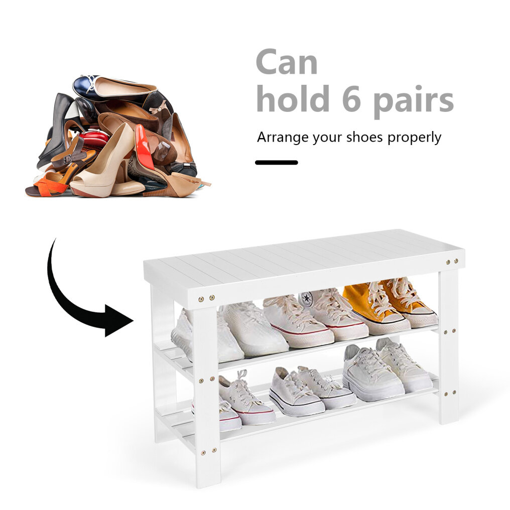 3 Tier Shoe Rack with Slatted Shelves: This 3 tier shoe organizer with storage creates a clutter-free space, organizes all your footwear in one place. Two lower shelves can hold up to 6 pairs of adult-sized shoes. What' more, two slatted shelves and raised legs ensure good ventilation and permeability, reducing bad smell.
