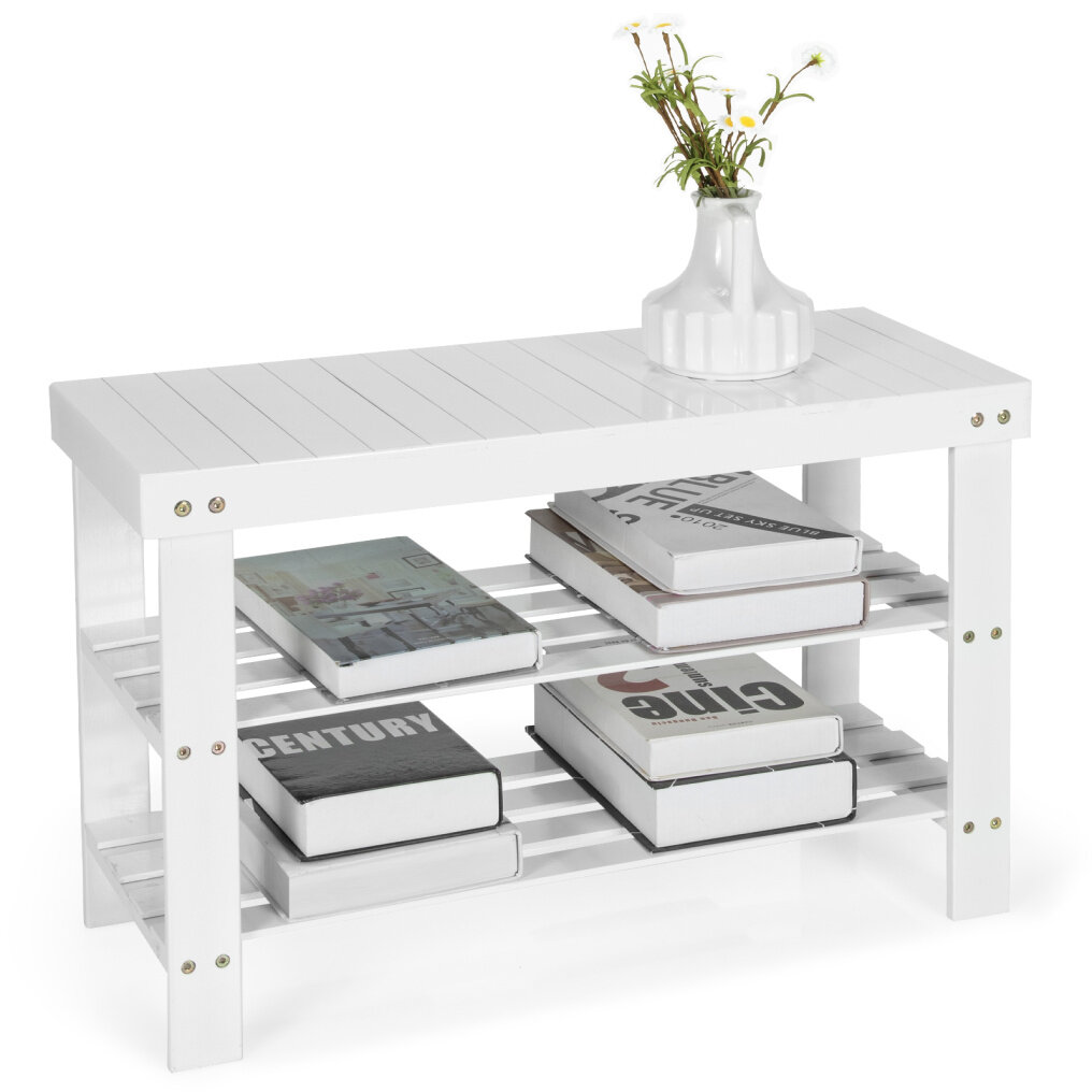 2-In-1 Design for Multi-Scene Use: The combination of shoe rack and bench is an excellent solution for insufficient space. Not only to be used as shoe rack for shoe storage, this multipurpose storage shelf can be used to put books, decorations and flowers, and it is also very suitable to put towels and toiletries in the bathroom.