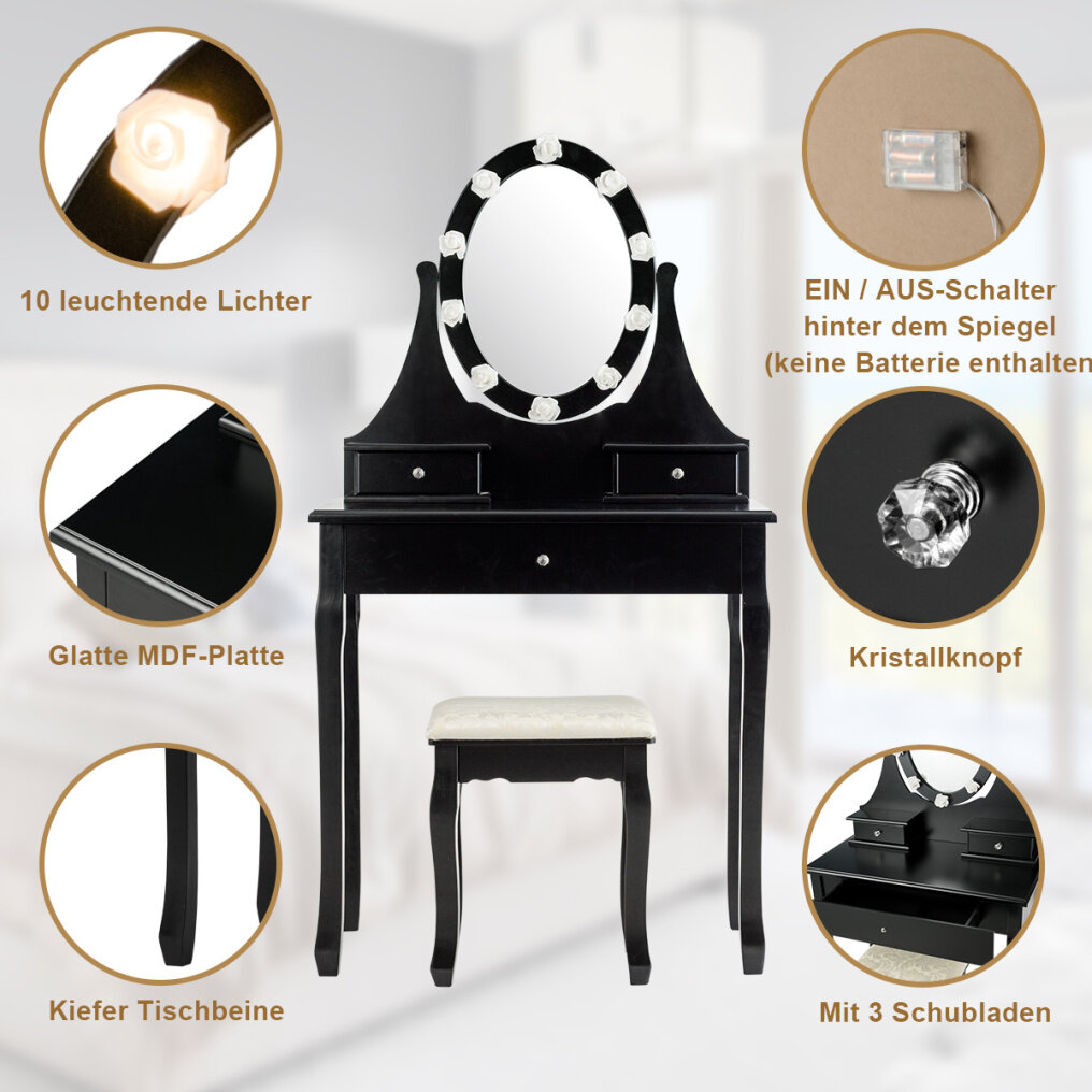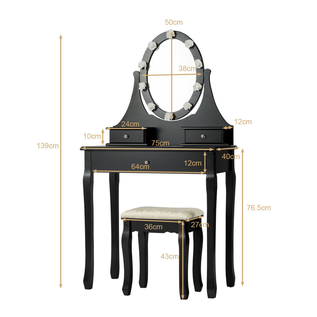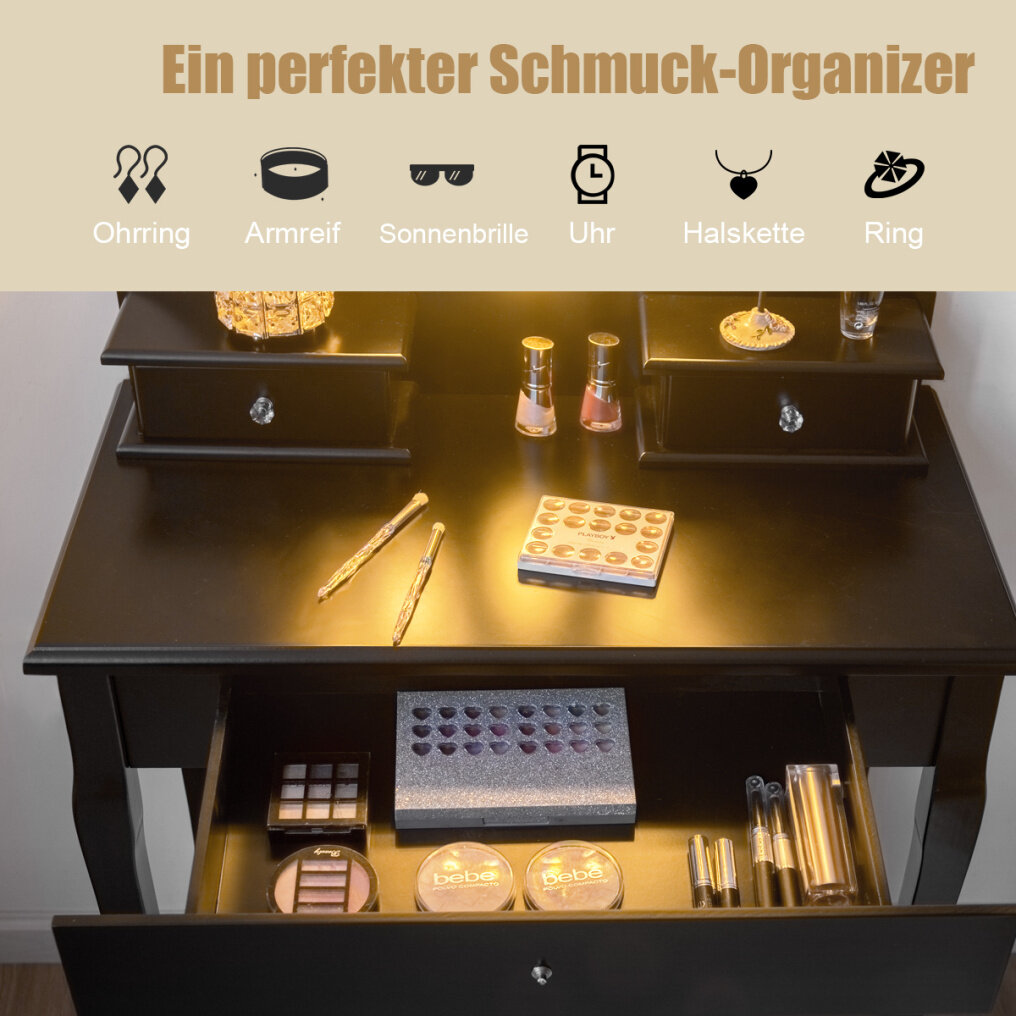 - 3 drawers provide larger storage space for cosmetics and jewelry