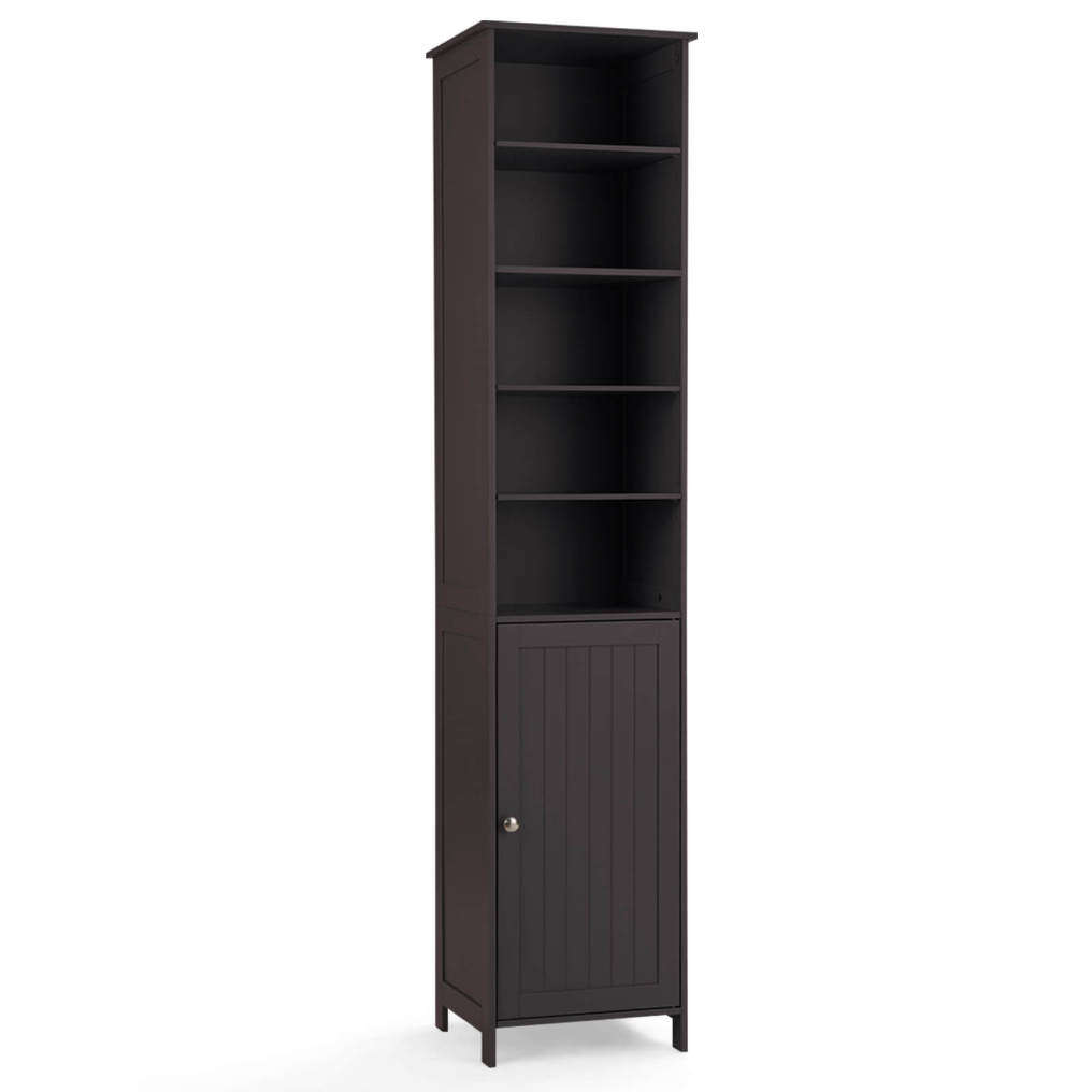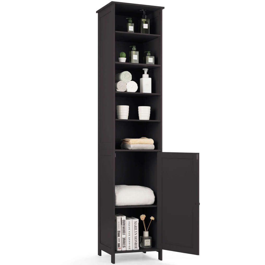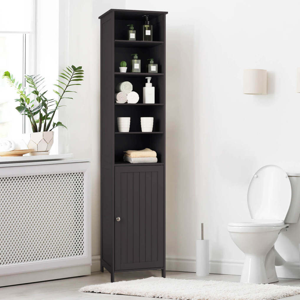 ● Smart and Modern Design: A wonderful all-around pragmatic bathroom tower storage cabinets. It was consist of five open shelves and one cupboard with door, with plenty of storage space for you to arrange your towels, plants or cosmetics, also hide some personal or unseemly necessities like toilet paper and cleaning products.