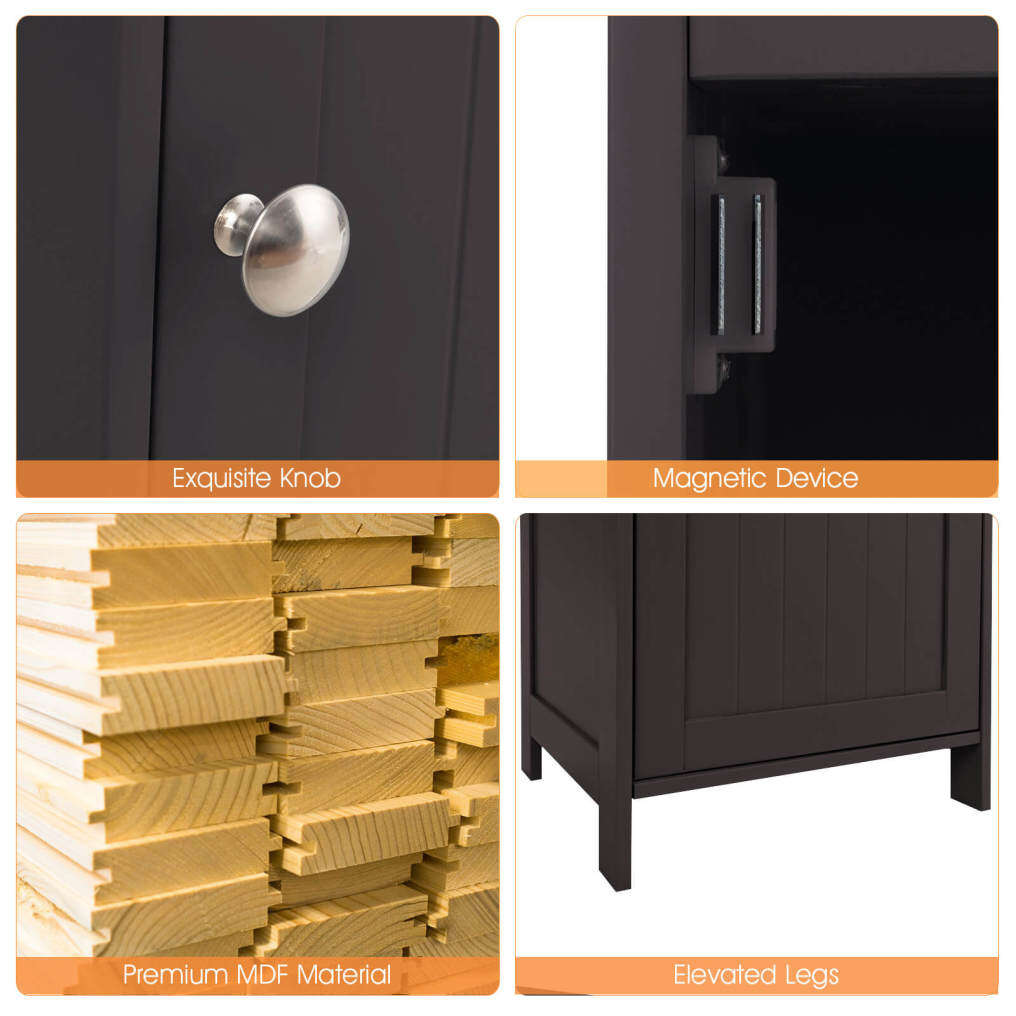 ● Adjustable Shelves: Bathroom floor cabinet equipped with 4 adjustable shelves(one active shelf inside of the cupboard). you can adjust the size of the space flexibly according to the size of your item or your personal needs.
