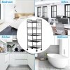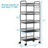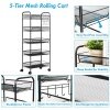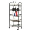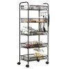 Various Storage Space with 5 Levels: The trolley consists of a total of 5 wire baskets, which allows you to store detergents, spices, cosmetics etc. This open storage space is convenient for putting in and taking out items. Towels, wooden spoons, etc. can be hung on the hooks.