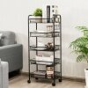 Are you looking for a simple and practical trolley? This trolley is supplied with a total of 5 wire baskets and a set of hooks, and it is used to store detergents, towels, dishes, books, etc. With the help of the wheels and handles, you can easily move the trolley around. The wire baskets ensure good ventilation so that no moisture will accumulate. The rectangular trolley can be placed in corners or limited places between other furniture without taking up a lot of space.