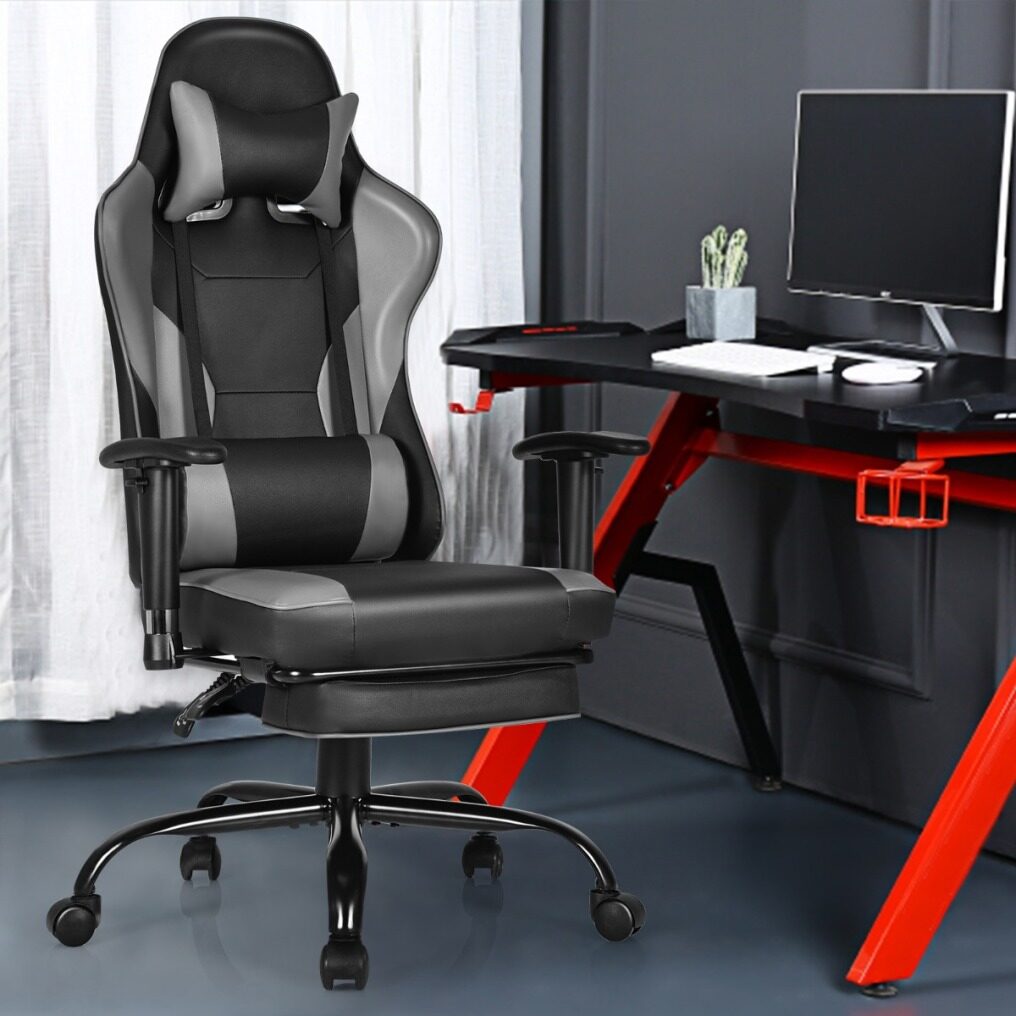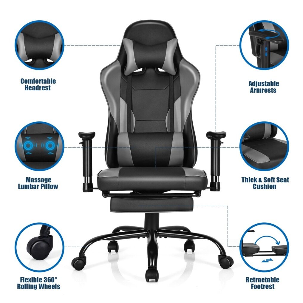 Ergonomic Design for Ultra Comfort: Equipped with a high backrest, removable headrest and massage lumbar cushion, this gaming chair can give you strong support for your whole body, keeping you comfortable after playing or working for a long time. In addition, the retractable footrest allows you to take a nap when you're tired.