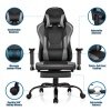 Adjustable Reclining Chair: This gaming chair features multiple adjustable functions to perfectly meet all your needs in daily use. The seat height can be adjusted from 18" to 22" to fit well with people of different heights. Moreover, adjustable backrest (90-135degrees) and armrests allow you to find ideal positions for working, gaming or napping.