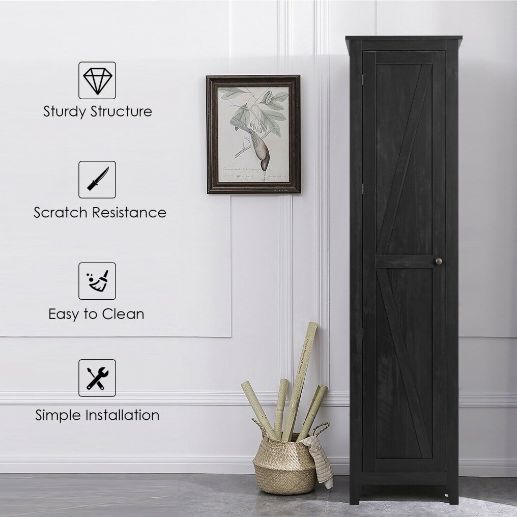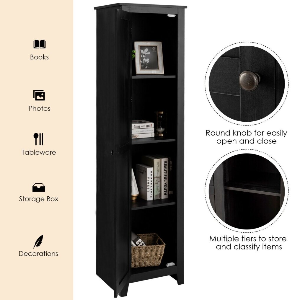 Besides, the anti-toppling device adds additional stability and four raised feet to make the cabinet suitable for damp places. 4 shelves provide ample storage space to place items in different sections while the cabinet only occupies a small space. The simple and elegant design makes the storage cabinet ideal for various home styles, such as the living room, bedroom, etc. In addition, the smooth surface is easy to clean and maintain.