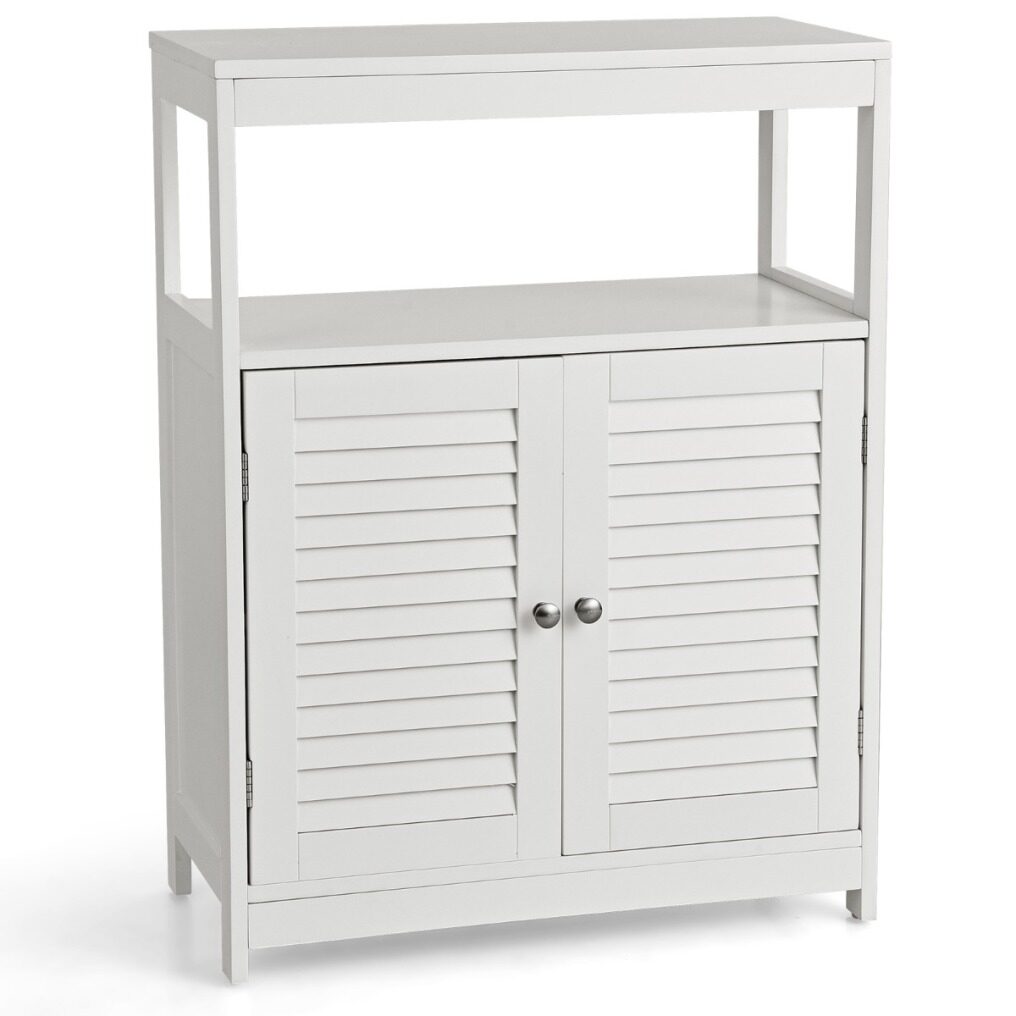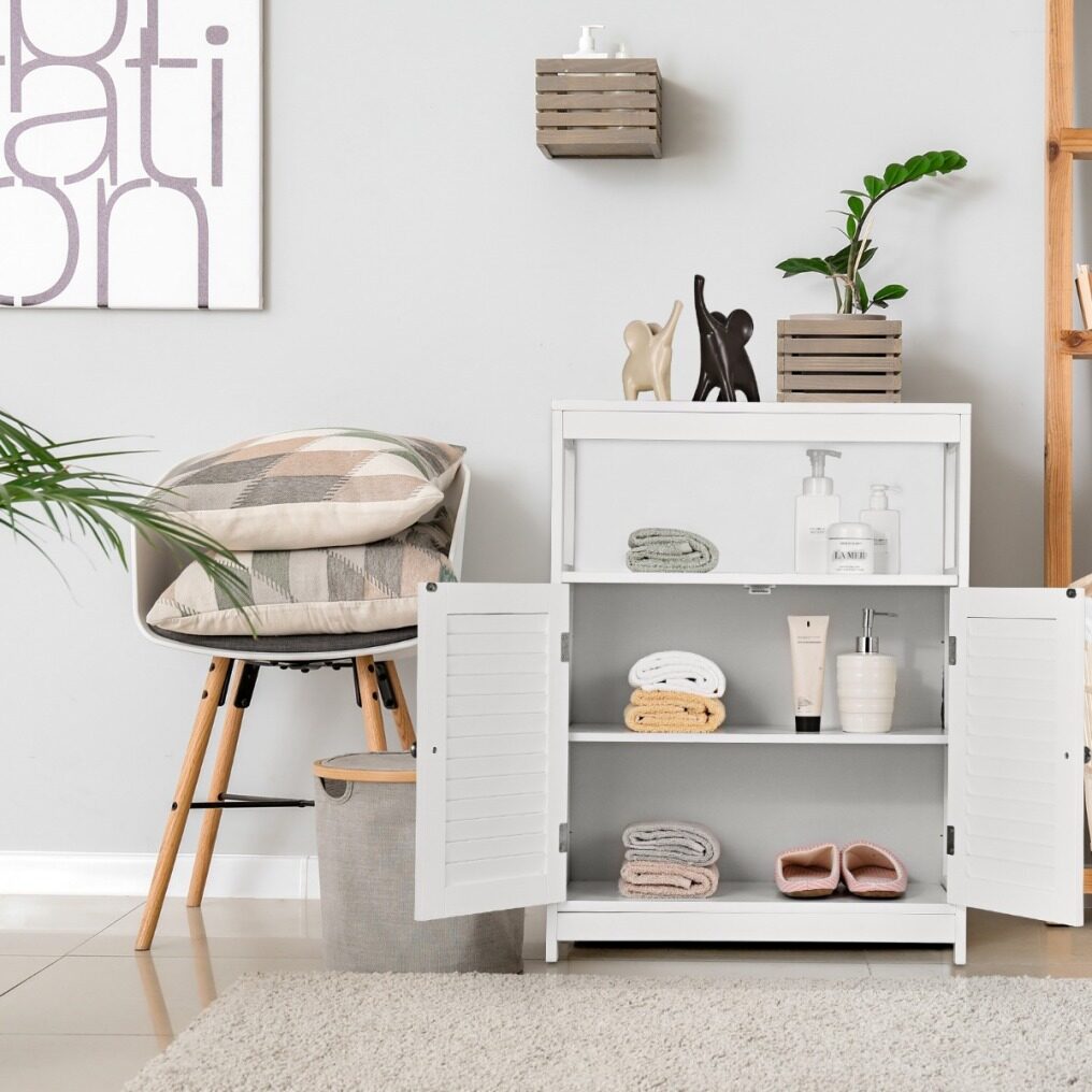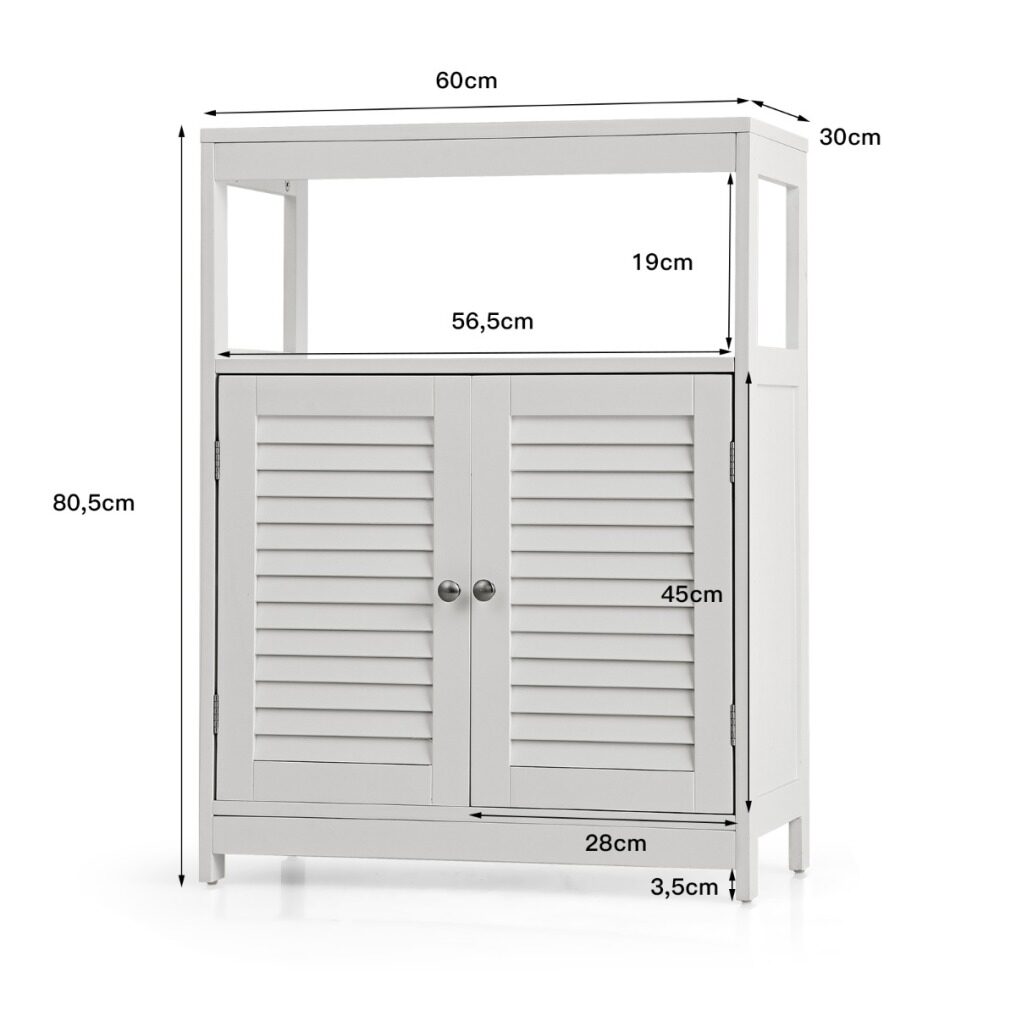 ● Convenient and Safe Use: The bathroom cabinet has an interior shelf with 3 adjustable heights, which can meet the storage needs of items of different heights. Smooth metal knobs make the doors easy to open and close. In addition, with an anti-tipping device on the back, this cabinet can be secured to the wall to avoid wobbling or tipping.