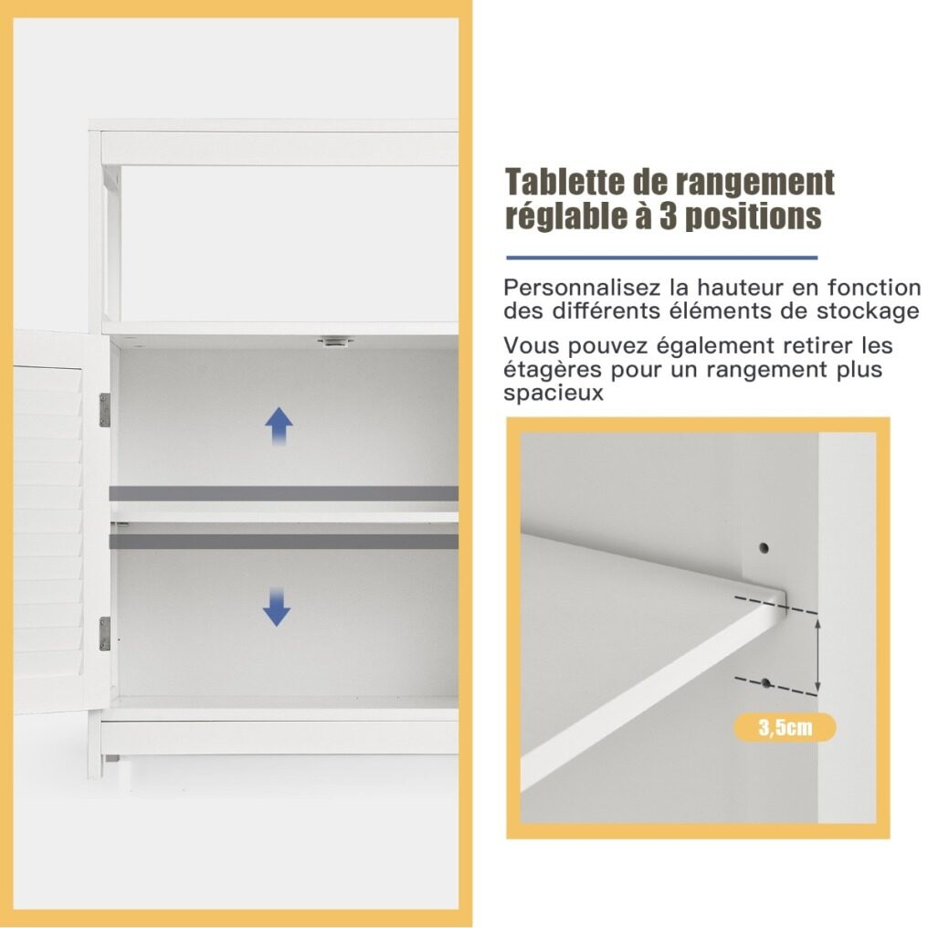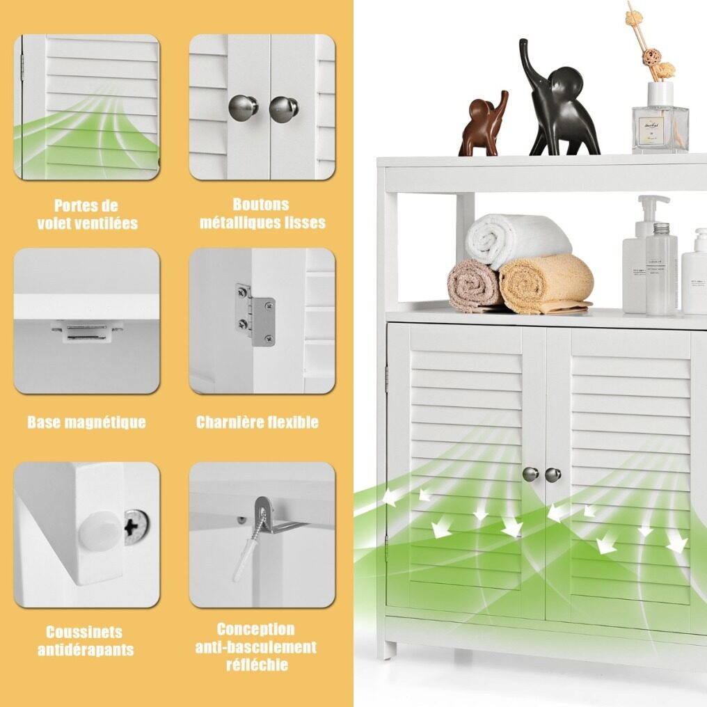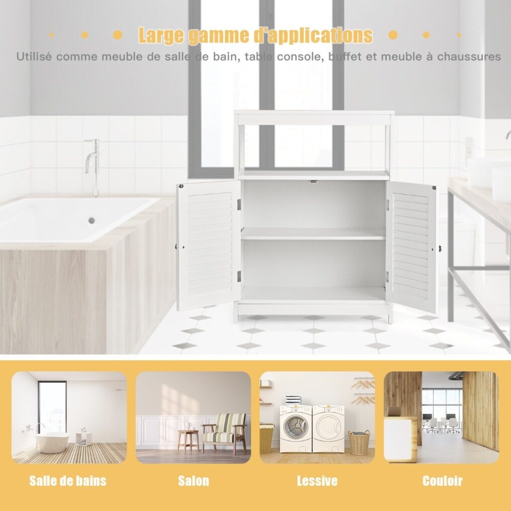 ● Convenient and Safe Use: The bathroom cabinet has an interior shelf with 3 adjustable heights, which can meet the storage needs of items of different heights. Smooth metal knobs make the doors easy to open and close. In addition, with an anti-tipping device on the back, this cabinet can be secured to the wall to avoid wobbling or tipping.