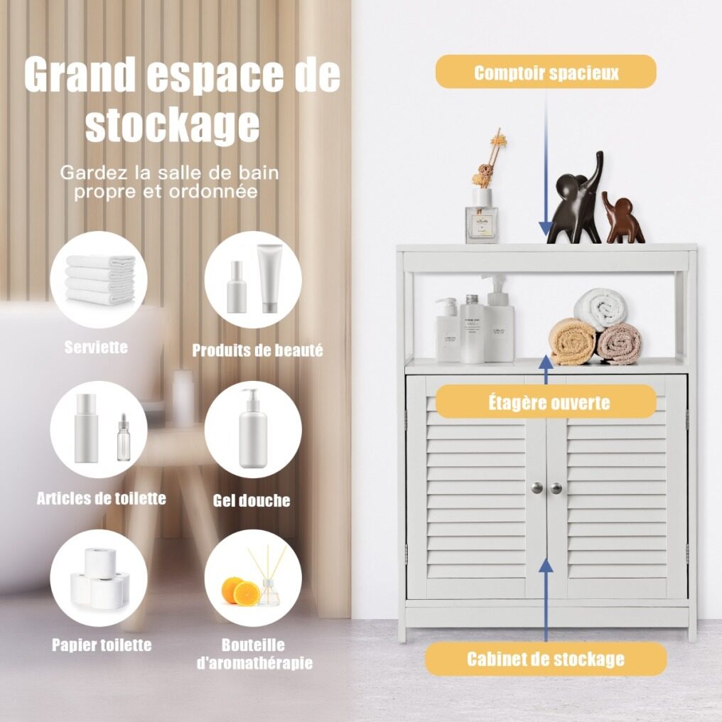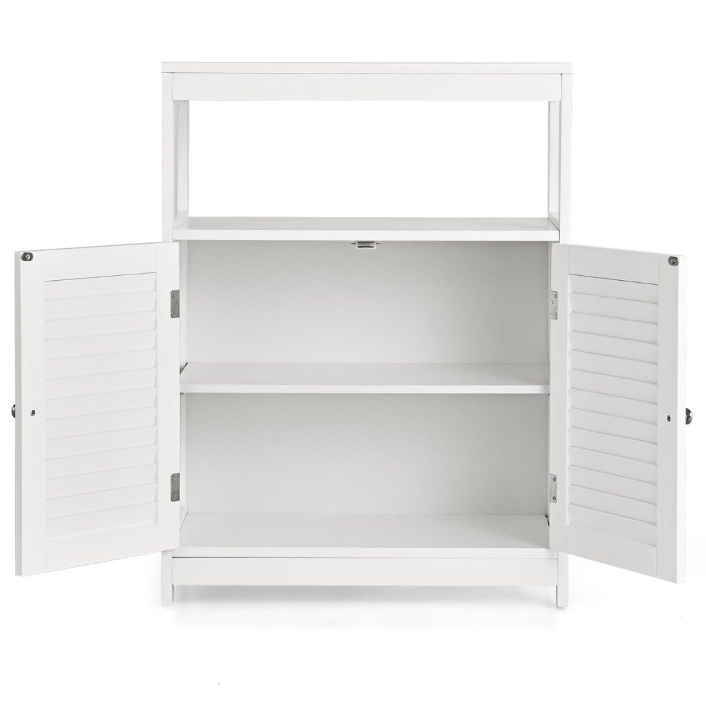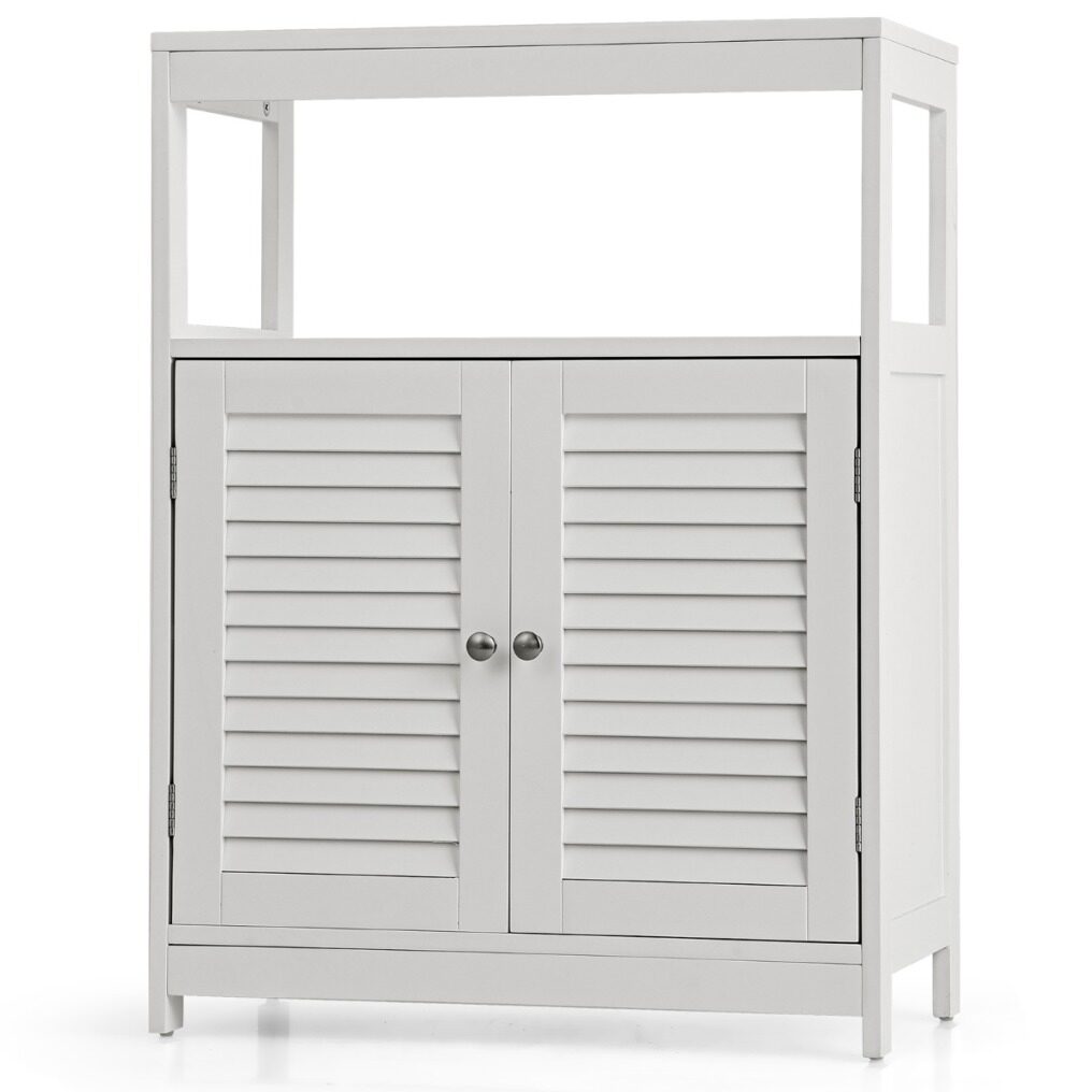 ● Large Storage Space: This bathroom cabinet can make full use of the available space to provide an ideal storage solution. Wide top and open shelf are suitable for potted plants, aromatherapy, photo frames, magazines, etc. And the cabinet with shutter doors provides additional hidden storage for towels, shower gel or toilet paper.