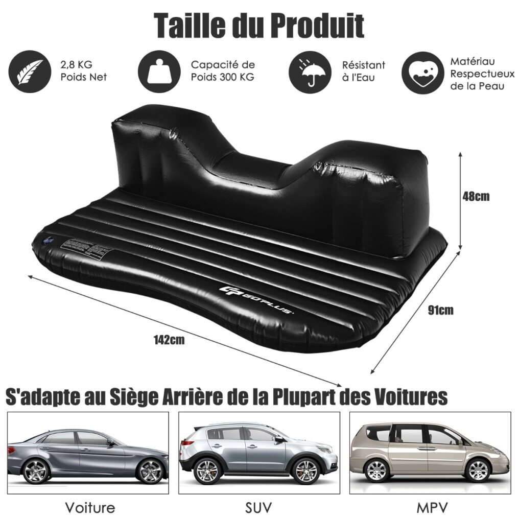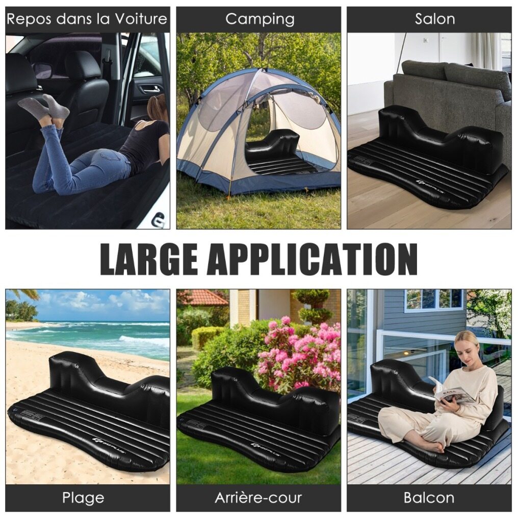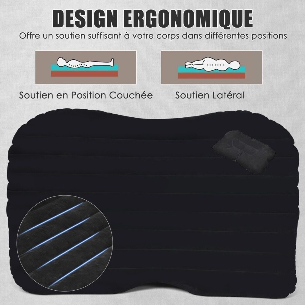 The double-sided car inflatable air mattress is built of soft flocking and PVC materials.