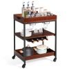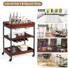 Premium Material & Sturdy Structure: Made of high-quality engineered wood with a heavy-duty metal frame, this kitchen bar serving cart is durable and sturdy enough to hold your dining essentials or other items with a strong load capacity. Moreover, the top and bottom shelves feature raised fences to prevent wine bottles from falling.