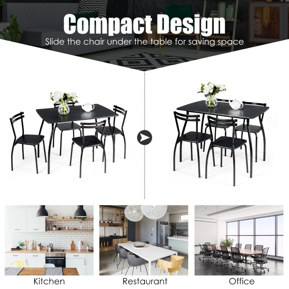 Space-saving Furniture for Small Spaces: This 5-piece dining table set is functional yet unobtrusive, with four chairs fit neatly underneath the table when not in use for extra floor space. Designed for simple dining for 4 people, the kitchen table set is a great solution for limited places , such as small kitchen, condo, studio apartment.