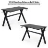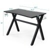 It is large gaming table that can withstand 220 lbs of weight and providing most space for your monitor, keyboard, mouse and speakers setup on the desk surface. Made of PVC carbon fiber surface which is scratch-resistant and easy to clean. Equipped with a cup holder, a headphone hook and two controller stands, the E-sports table will keep all of your gaming gears organized and convenient for your daily needs. X-shape steel frame ensures stability and durability of the table which plays an important role in gaming.