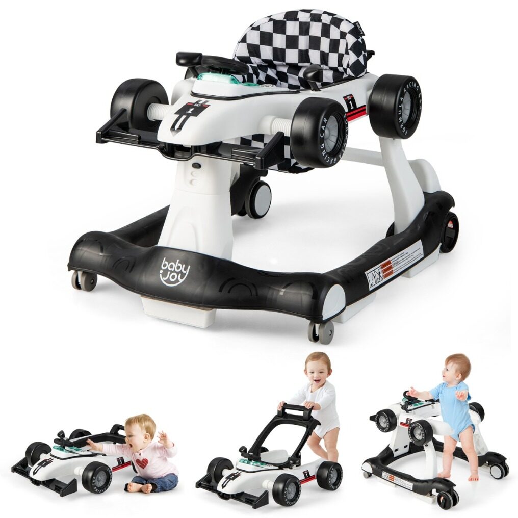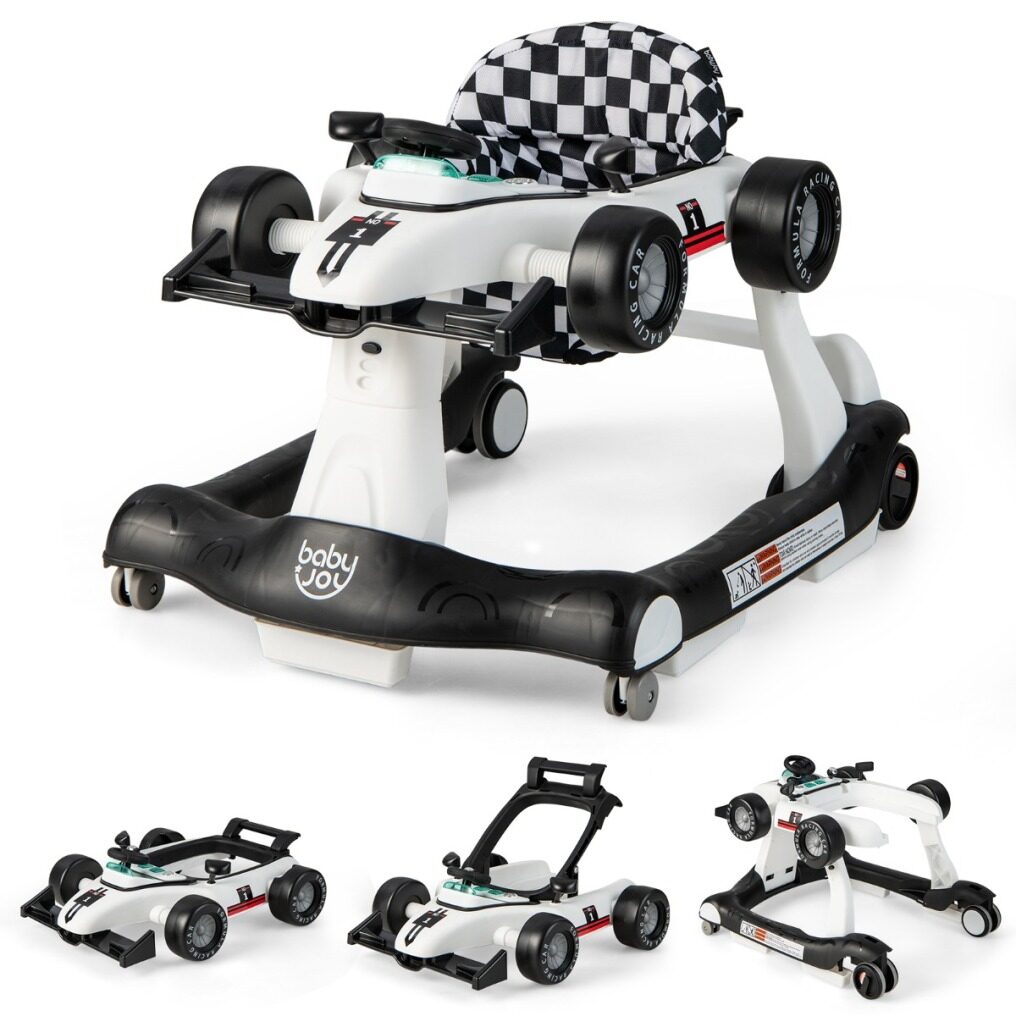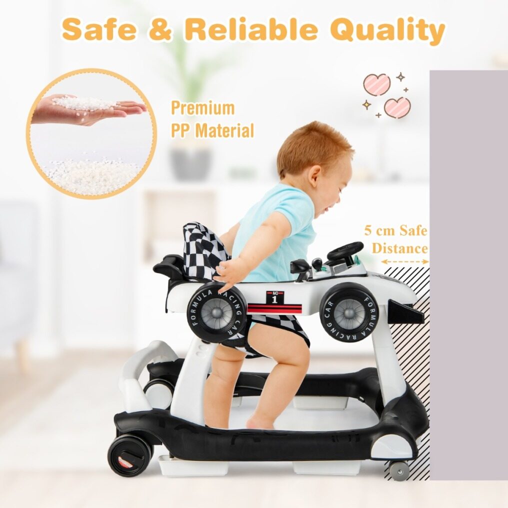 ● Interactive Design: Boasting a steering wheel, shifter, 2 light buttons with different lights and 2 rearview toy mirrors, this baby walker simulates the appearance of a racing car, satisfying your little one's curiosity for exploring and early learning. And the music makes the fun even longer. Requires 2 AA batteries (not included).