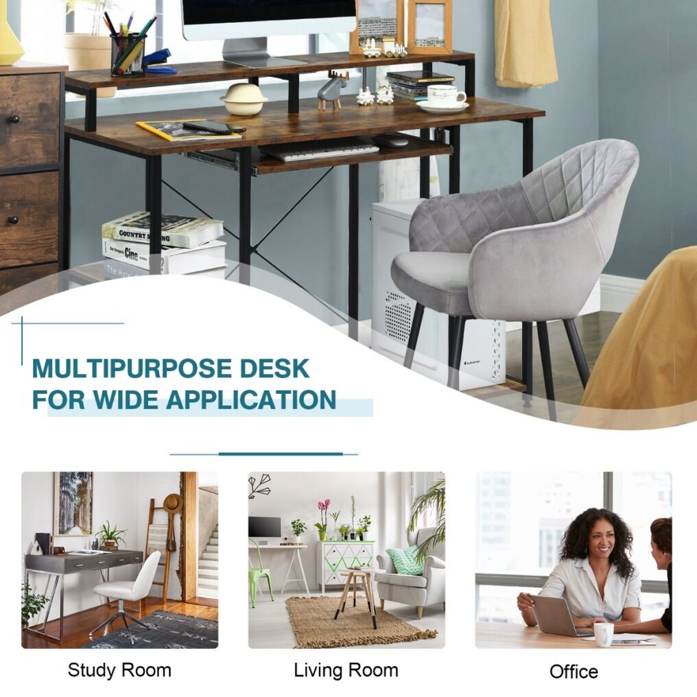 Spacious Storage Space: The computer desk featuring 2-tier open storage shelves, CPU stand, monitor riser and keyboard tray which provides large storage space for your daily work & study to keep your room as tidy as possible. All of the documents, books or decorations are always in reach.