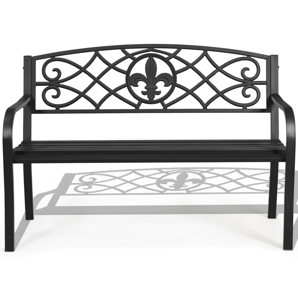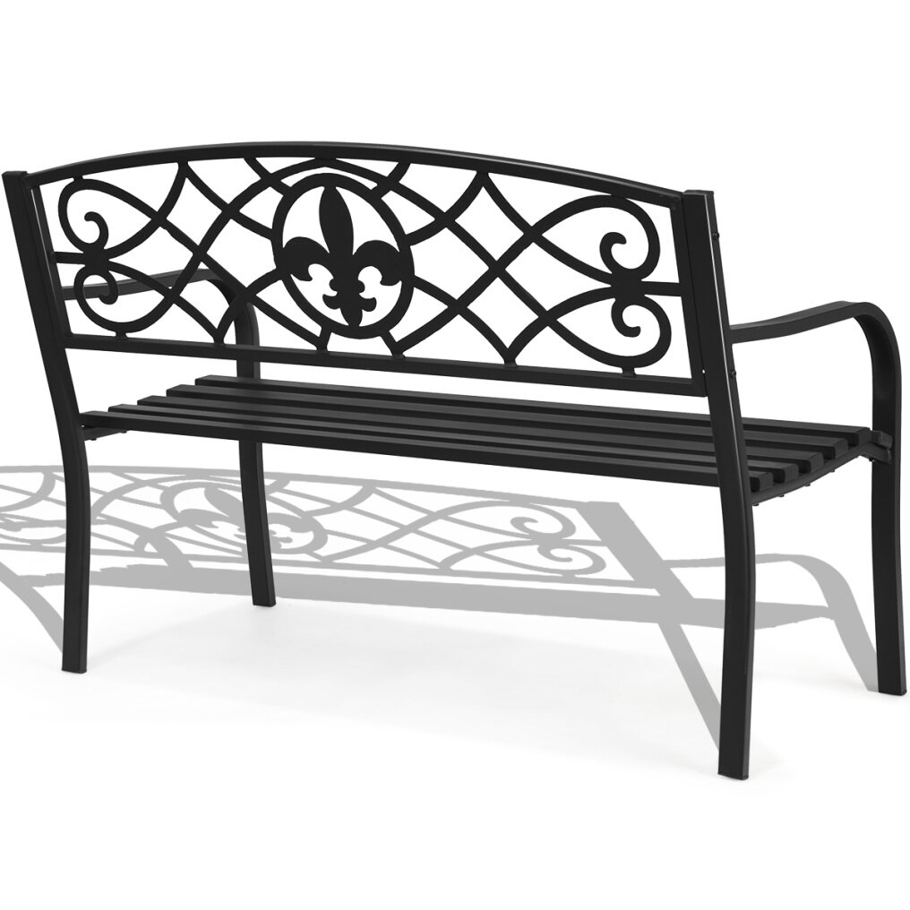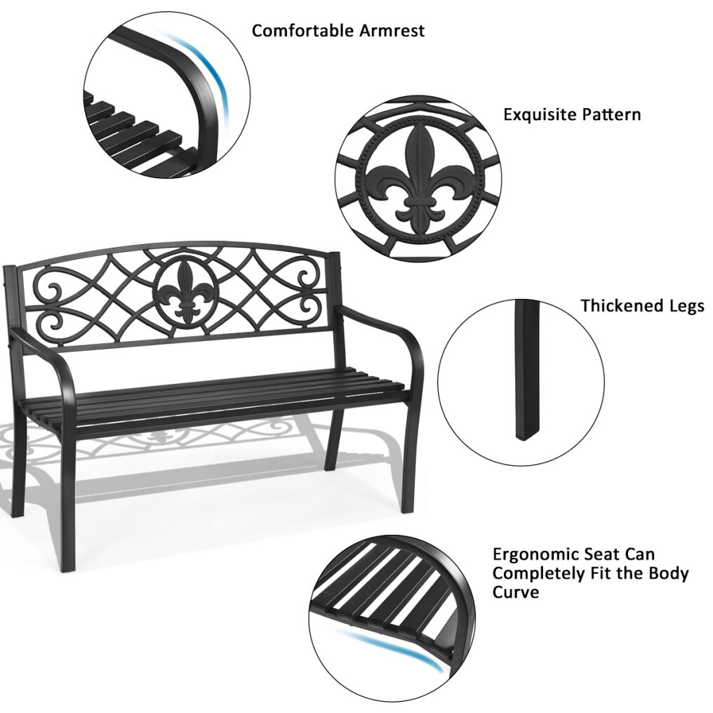 ● Powder-Coated Steel for Durability: Constructed of heavy-duty steel, this patio garden bench is strong and durable enough to ensure an extremely long service life. It also has a black powder-coated surface that is rustproof and weather-resistant, which is designed specifically for outdoor use. Besides, the gap between each slat can prevent water accumulation on rainy days.