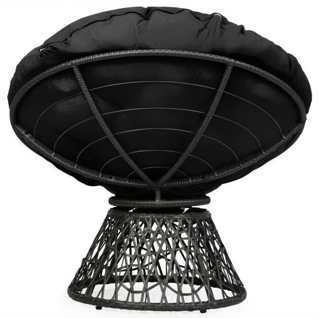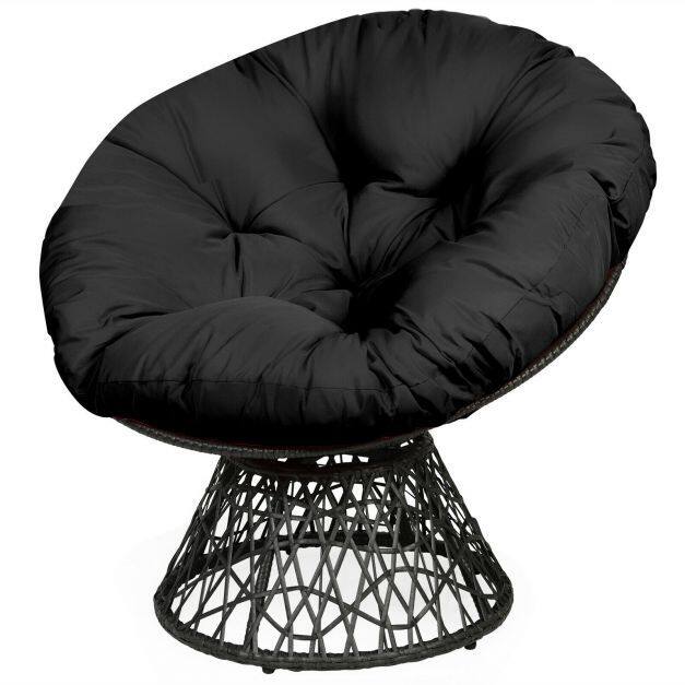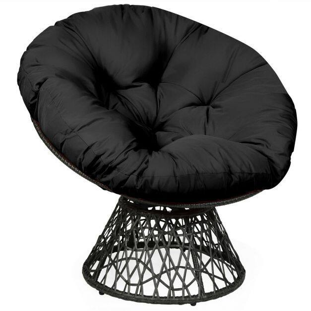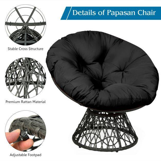 Rattan Papasan Chair Ergonomic 360-degree Swivel Soft Cushion Garden-Black