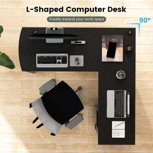 ● L-Shaped Desktop for Roomy Working Area: The stylish and spacious L-shaped desktop makes full use of corner space and keeps everything you need near your hand, such as your laptop, monitor, cups, books, or other desk accessories. Thus, this space-saving computer desk can help you maximize working or studying efficiency.
