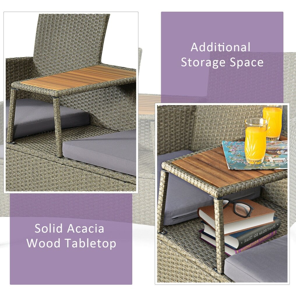 ● Center Coffee Table for Space-saving: Different from other ordinary loveseat sofas, the tabletop of our upgraded loveseat is made of acacia wood. It is durable and solid, which is perfect for outdoor use. You can put cups or glasses on the center table without getting extra one. Also, there is additional storage space under the table for your books or accessories.