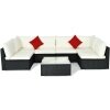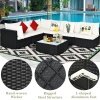 Versatile Sectional Sofa Set: The free combination of 2 corner sofas, 4 armless sofas and a coffee table allows you to change the position according to your different needs. With a stylish appearance and clean lines, this 7-piece outdoor furniture set will be a perfect addition to your indoor and outdoor places.