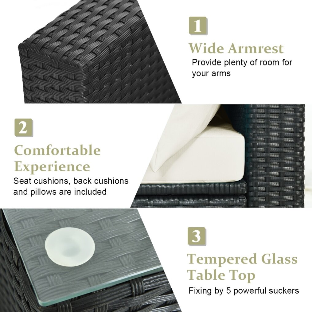 Material: PE Rattan, Metal, Tempered Glass, Polyester, Sponge