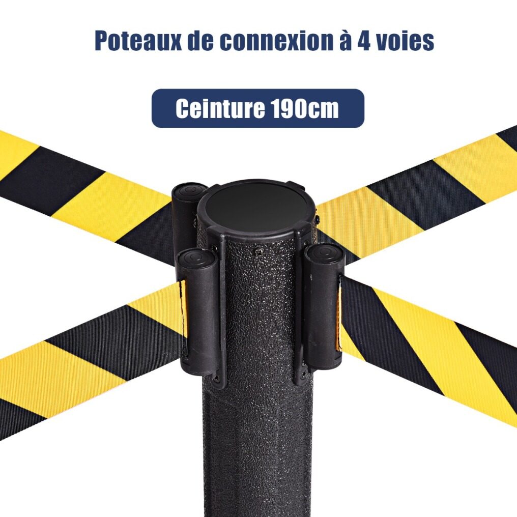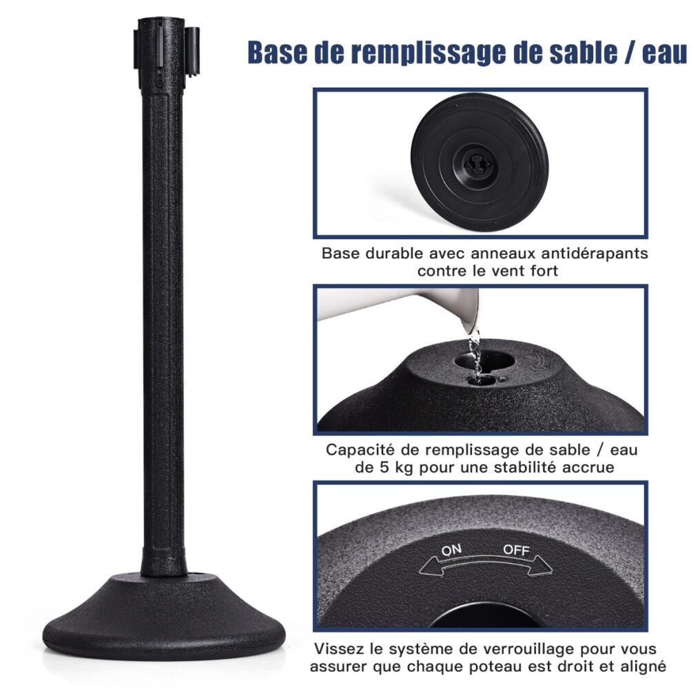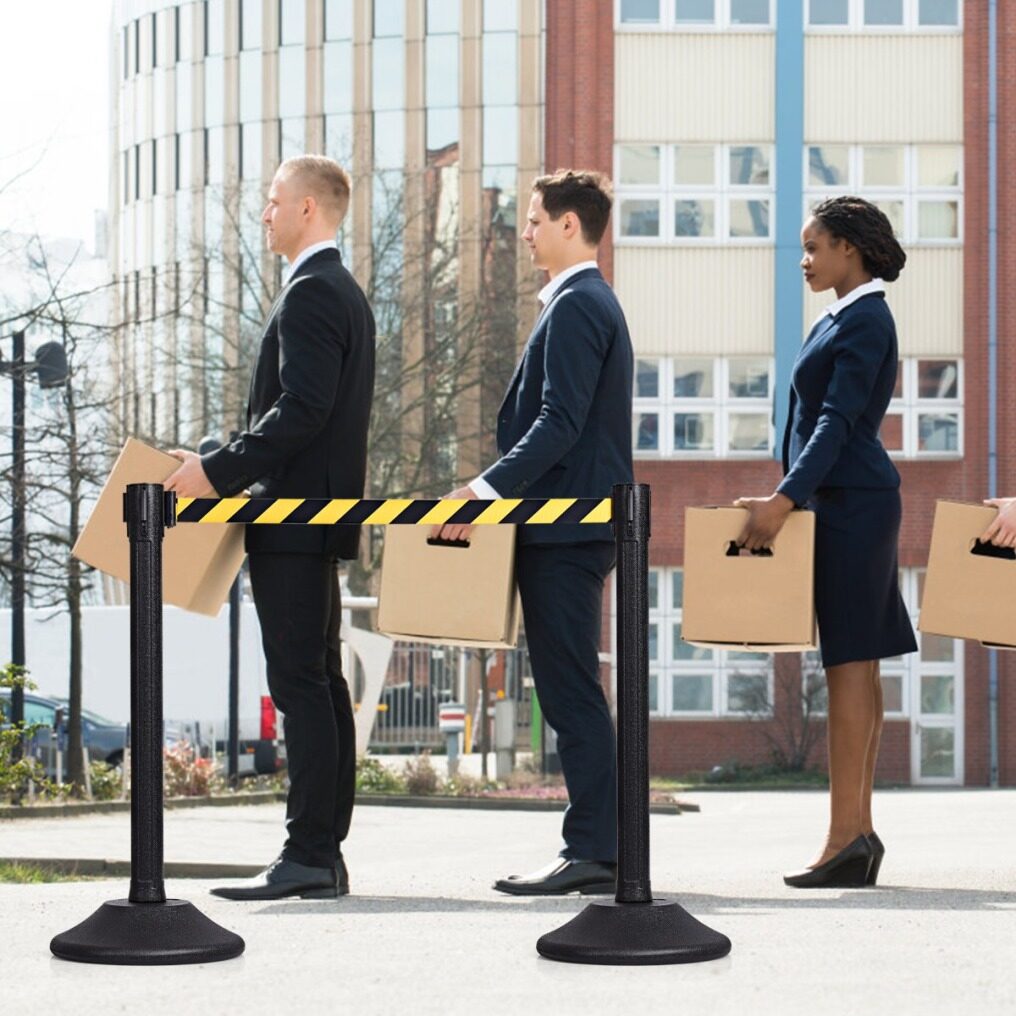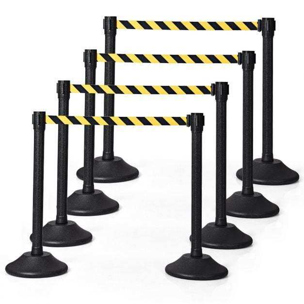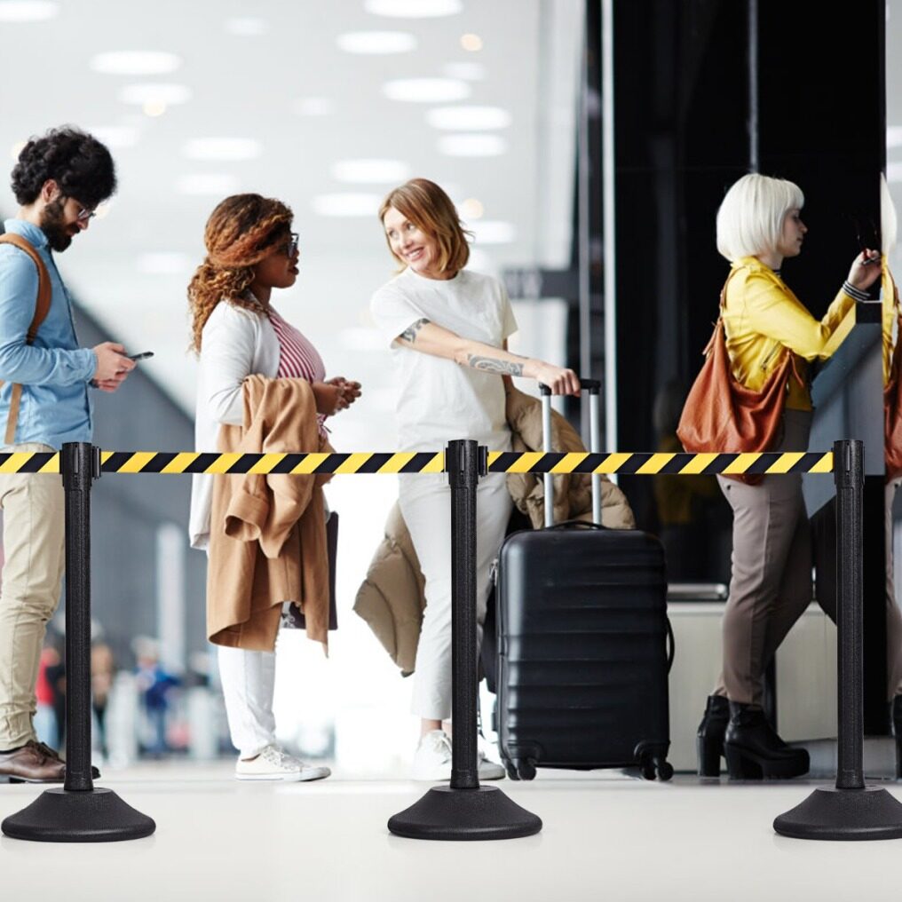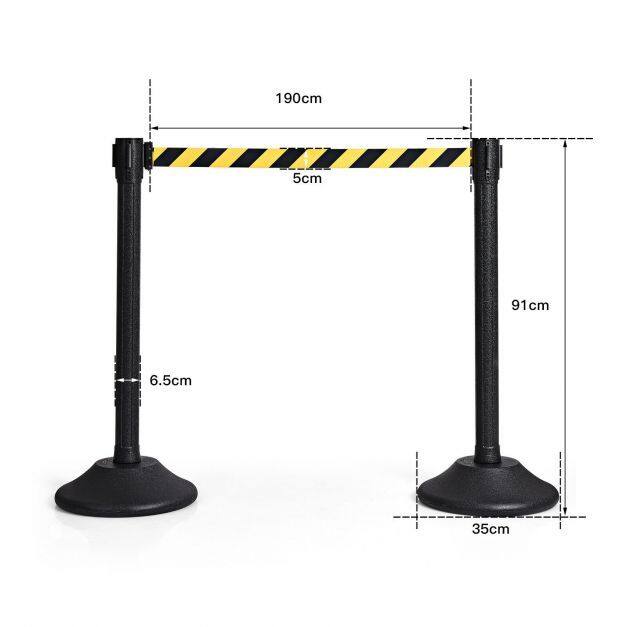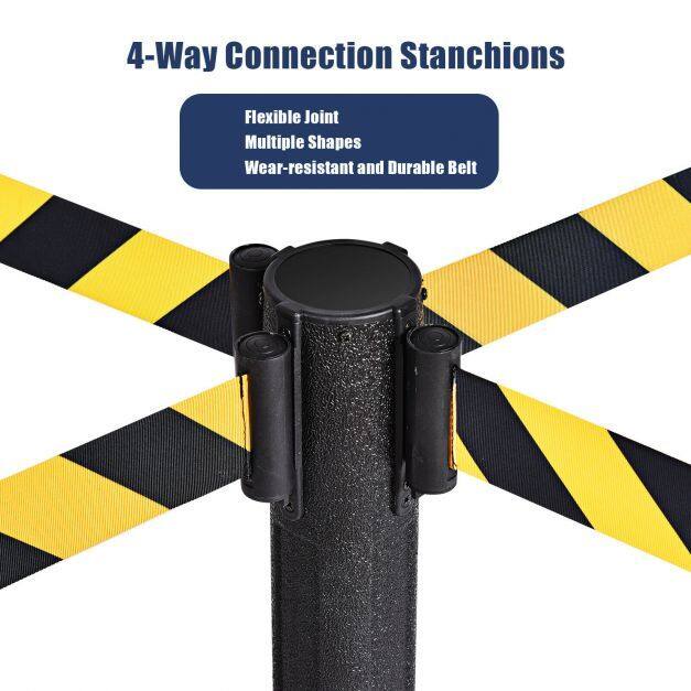 4-way adapters on the top of stanchions allow the belt to attach from any direction. 75" retractable belt has a slower retracting speed to ensure safe use. The ability to isolate, control, and guide the crowd allows this sturdy stanchion set to appear at airports, hotels, banks, museums, and many other places. No tools are required for assembly. You can freely combine poles together to meet your different needs.