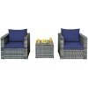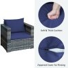 ● Steel Frame with Exquisite Rattan: The frame of this patio furniture set is made of steel and wrapped with PE weather-resistant wicker which ensures stability and durability. And the set can withstand the moderate change of weather in outdoor space.